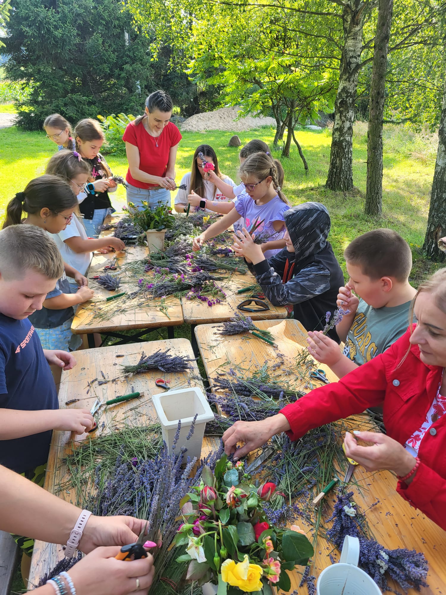 Już od pierwszych chwil dzieci i dorośli zanurzyli się w lawendowym świecie – poznali tę roślinę wszystkimi zmysłami: wąchali jej intensywny zapach, podziwiali różne odmiany i kolory, dotykali aksamitnych kwiatostanów. Dowiedzieli się, skąd bierze się niezwykła moc lawendy i jak szerokie jest jej zastosowanie – od ziołolecznictwa, przez kosmetykę, aż po kulinarne eksperymenty.