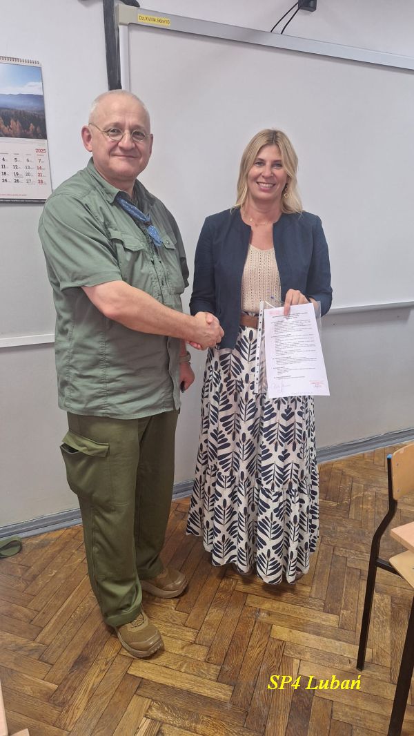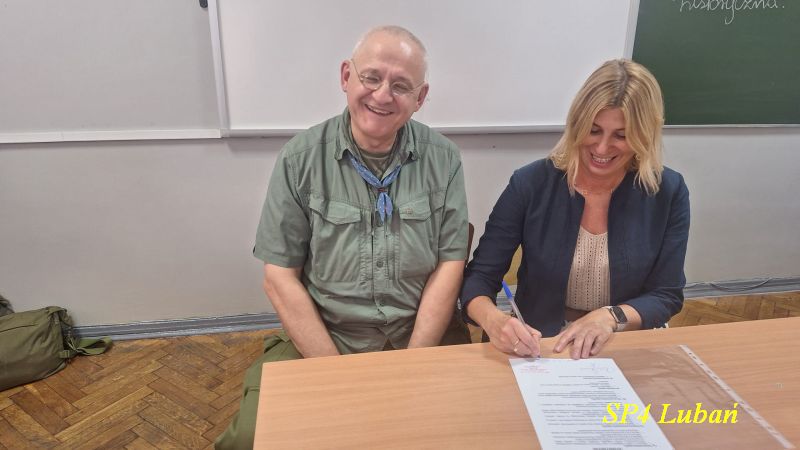 Ostatnim punktem spotkania było podpisanie Regulaminu przyznawania nagrody za wybitne osiągnięcia w nauce historii w formie stypendium naukowego za rok szkolny 2025/2026. Dokument podpisali pan Piotr Kucznir – prezes ŁTH Zamku Czocha, jako Fundator Stypendium oraz  wicedyrektor naszej szkoły pani Elwira Wojtusik. Jest to wyraz współpracy naszej szkoły z Łużyckim Towarzystwem Zamku Czocha, które zostało podpisane w kwietniu br. i jak widać współpraca ta otwiera przed naszą szkołą nowe możliwości wspierania uczniów pasjonujących się historią i rozwijania ich talentów.