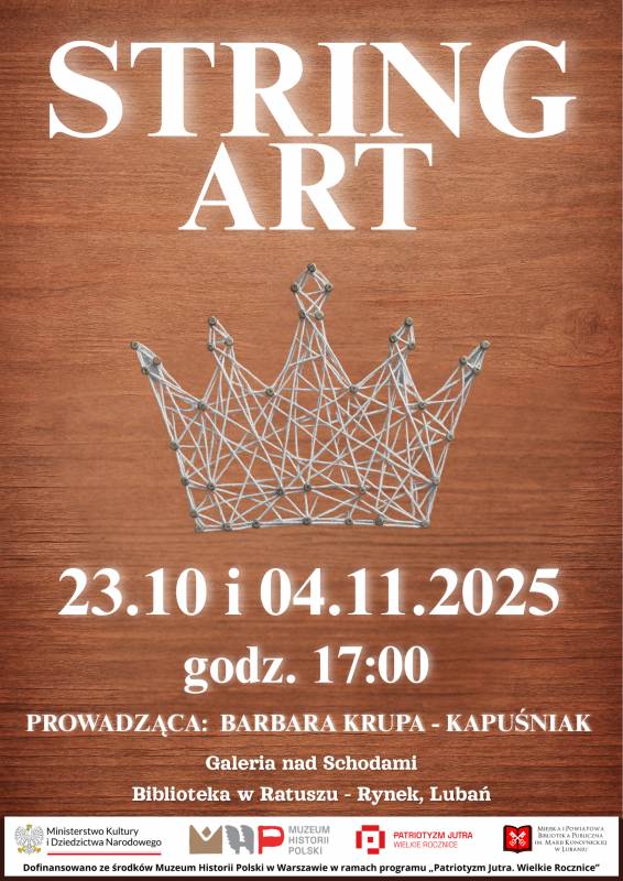 W naszej bibliotece też tworzymy sztukę! Zapraszamy na zajęcia ze string artu – czyli malowania… nicią i gwoździami. Przyjdź, spróbuj, zainspiruj się!