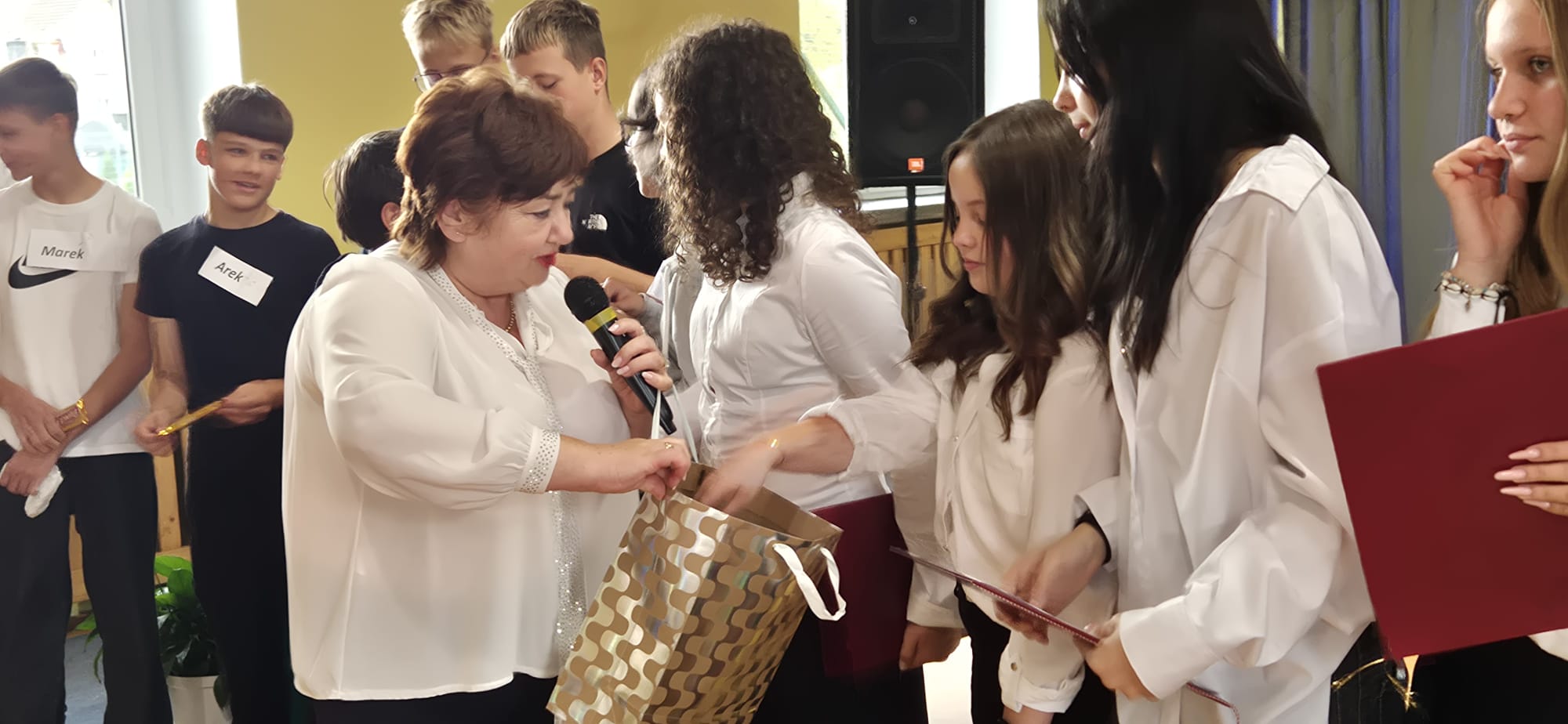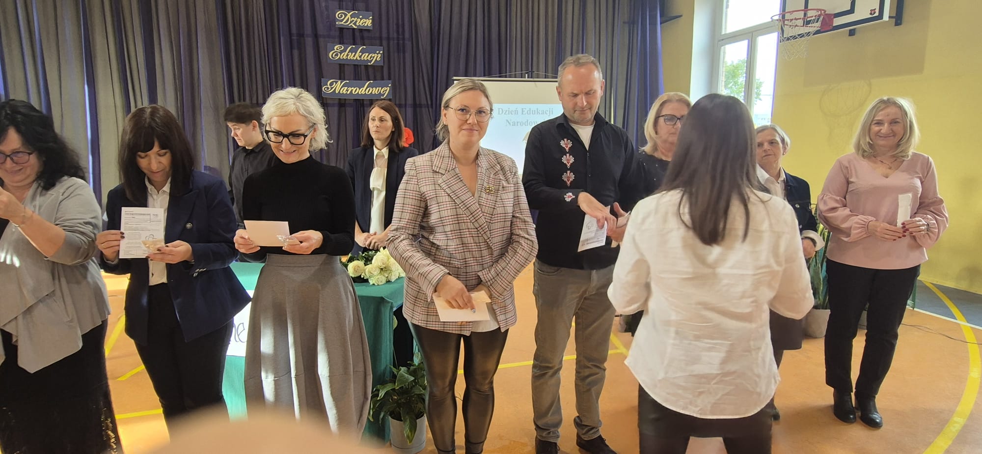 W piątek, 10 października, w SP1 odbyły się uroczyste apele z okazji Dnia Edukacji Narodowej. Na sali gimnastycznej – w dwóch turach – zebrali się wszyscy nasi uczniowie z kl. 1-8, pracownicy obsługi i administracji oraz całe grono pedagogiczne z dyrekcją szkoły na czele. Wśród gości wydarzenia były panie: Katarzyna Kempa-Kujawa – kierownik Referatu Edukacji, Alicja Krężel i Beata Kuźmicka – przedstawicielki Rady Rodziców. Apel zaś składał się z dwóch części: artystycznej (m.in. „Familiady” wykonaniu uczniów kl. 7-8) oraz oficjalnej, czyli wręczenia Nagród: Dyrektora Szkoły i Burmistrza Miasta Lubań.