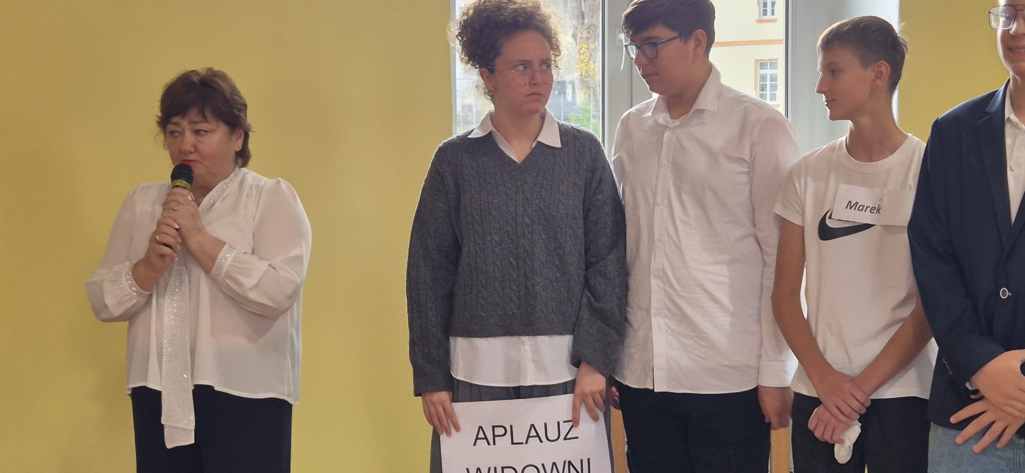 Dodatkowo drobne upominki od Rady Rodziców, a także SU otrzymali nasi „belfrzy”. Bardzo serdecznie dziękujemy za te wyjątkowe oraz niepowtarzalne apele. Wielkie i gromkie brawa dla Was – drodzy uczniowie i nauczyciele! Osobami odpowiedzialnymi za przygotowanie tego niezwykłego wydarzenia byli: pani Jolanta Dziędzioła, pani Iwona Smolińska (przedstawienie), pani Małgorzata Kobylarz (dekoracje), pan Krzysztof Kucharczyk (oprawa muzyczna), pan Piotr Barański (nagłośnienie), pan Daniel Kucharczyk (opracowanie prezentacji), pani Aleksandra Kalinowska (napisy), uczniowie – Kornel Kaczmarczyk i Miłosz Barański (obsługa techniczna) oraz pracownicy obsługi.