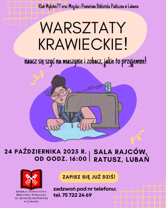 Kolejne warsztaty w kooperacji z Klub Kobiet MykobieTy z maszynami do szycia już 24 października 2025 r. o godz. 16:00 w Sali Rajców.