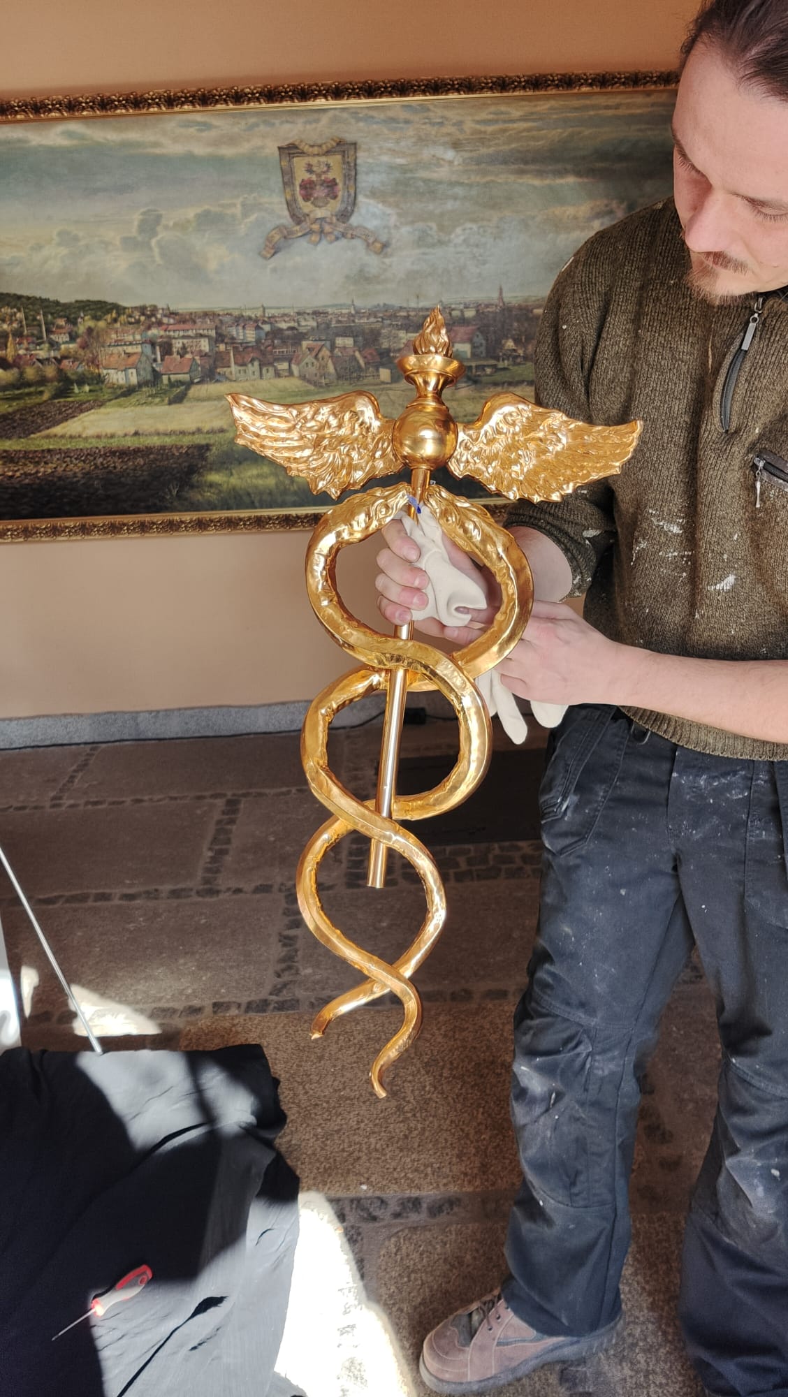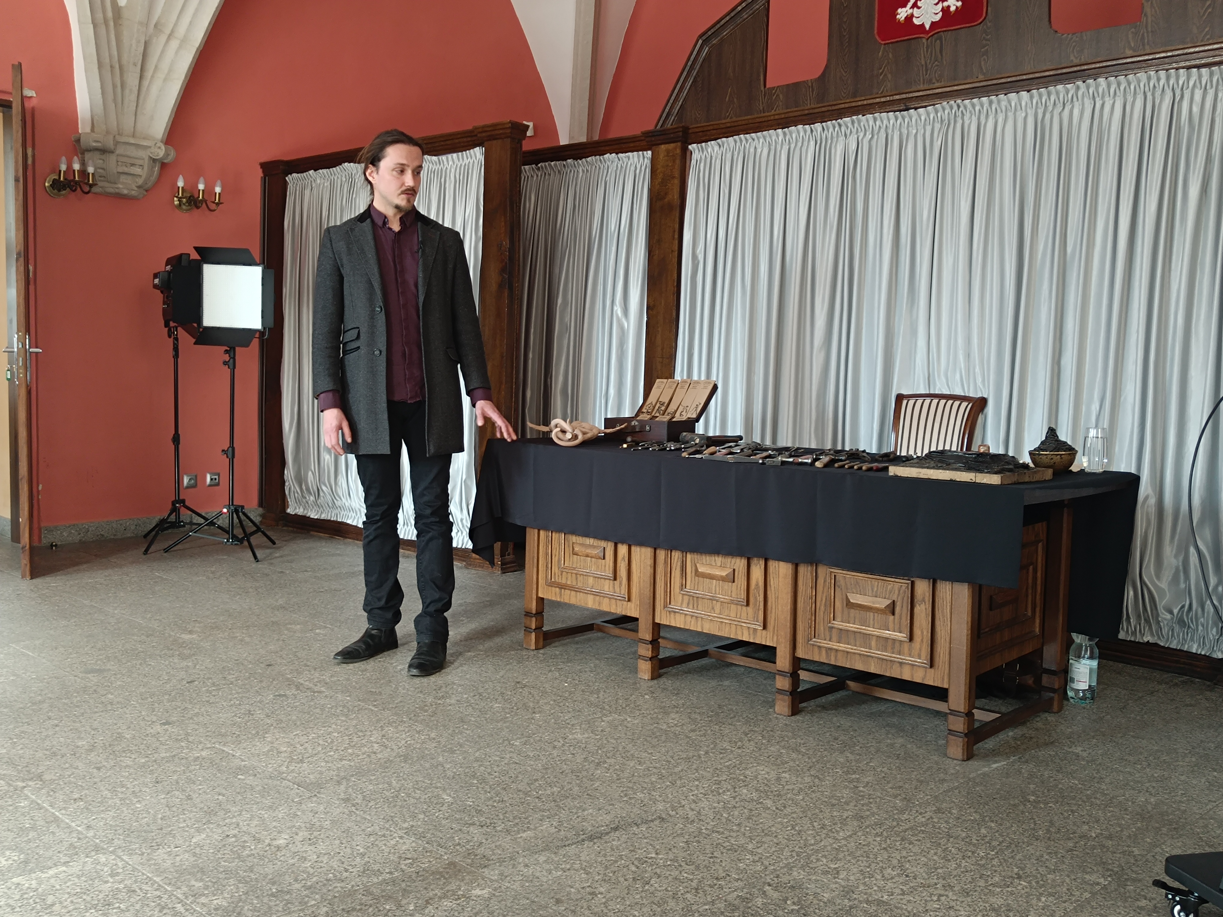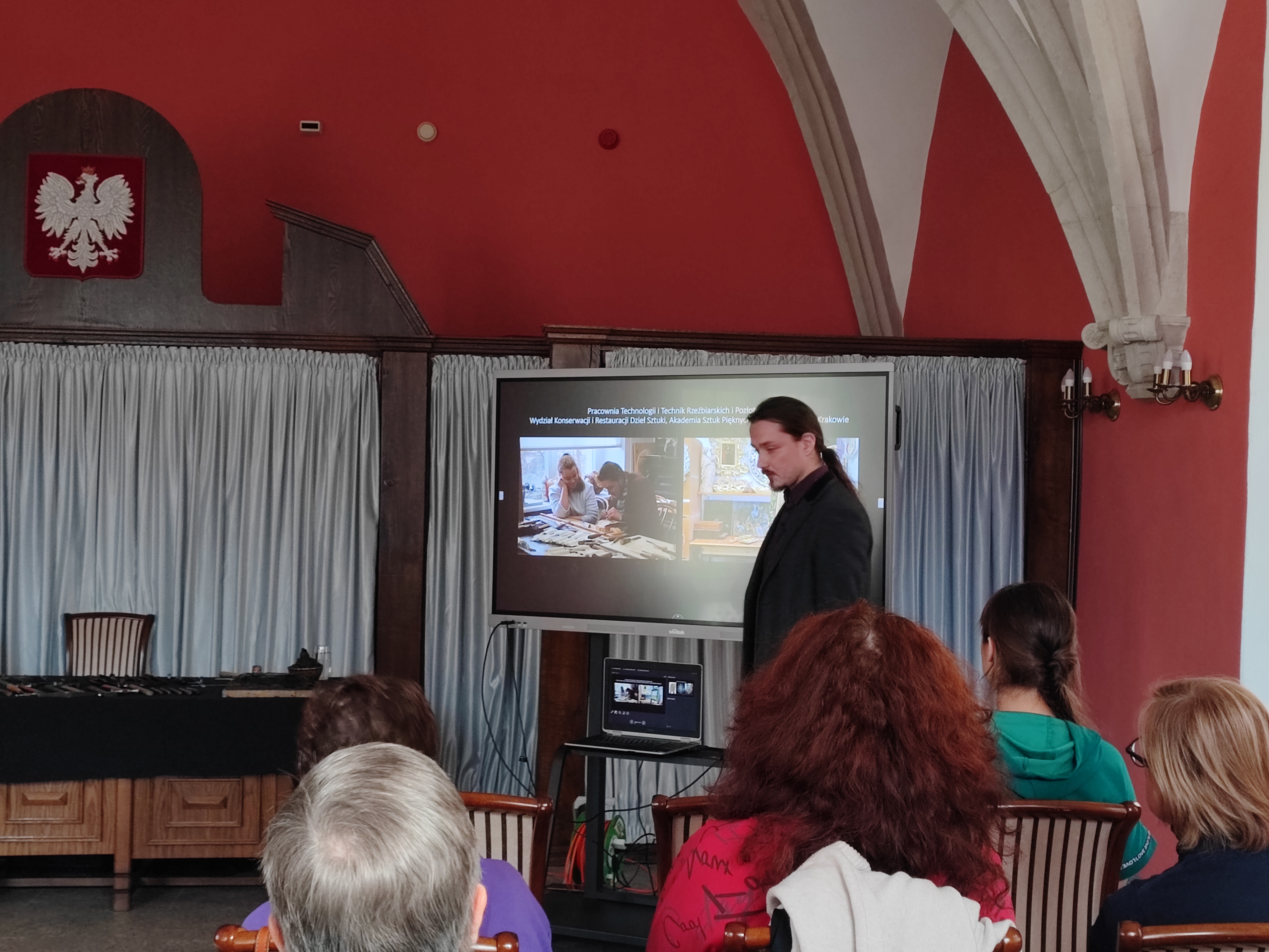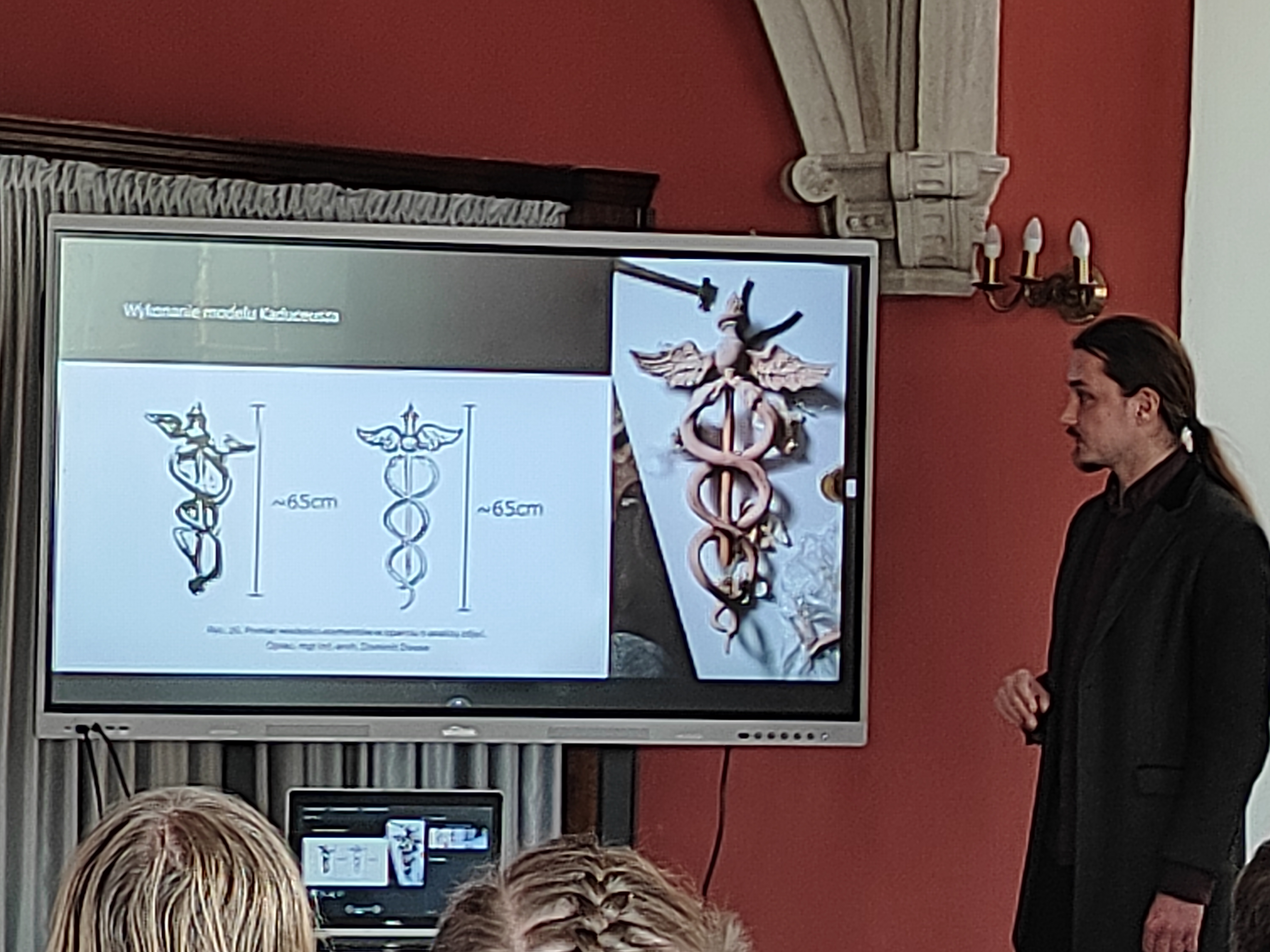 Naszym gościem był Maciej Malczewski, konserwator dzieł sztuki i wykładowca Wydział Konserwacji i Restauracji Dzieł Sztuki ASP w Krakowie , który - na przykładzie trwających prac rekonstrukcyjnych przy figurze Hermesa z południowego portalu Ratusza w Lubaniu (odtworzenie zabytkowego kaduceusza) - opowiedział o tajnikach tej historycznej, rzadko praktykowanej już techniki.