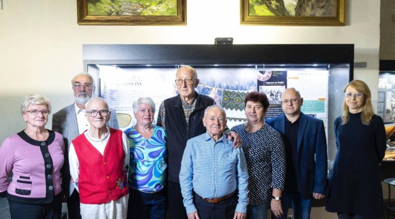 W tle gablota z wystawą "My, Polacy z Bukowiny", którą zaprojektowała Beata Tymińska. Historia osadnictwa powojennego na terenach Lubania i okolic jest fascynująca!
