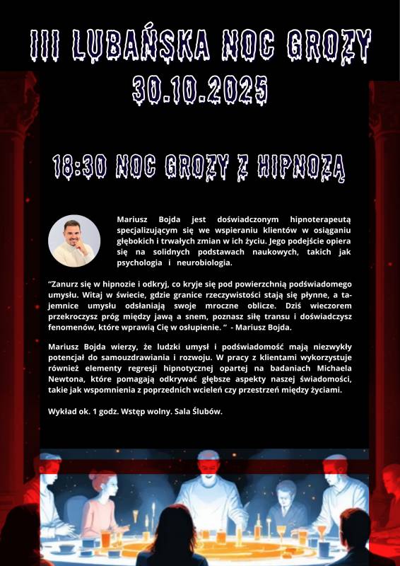 Uwaga! Uwaga! Nadchodzi III Lubańska Noc Grozy, którą organizuje Muzeum Regionalne w Lubaniu oraz Miejska i Powiatowa Biblioteka Publiczna im Marii Konopnickiej w Lubaniu!