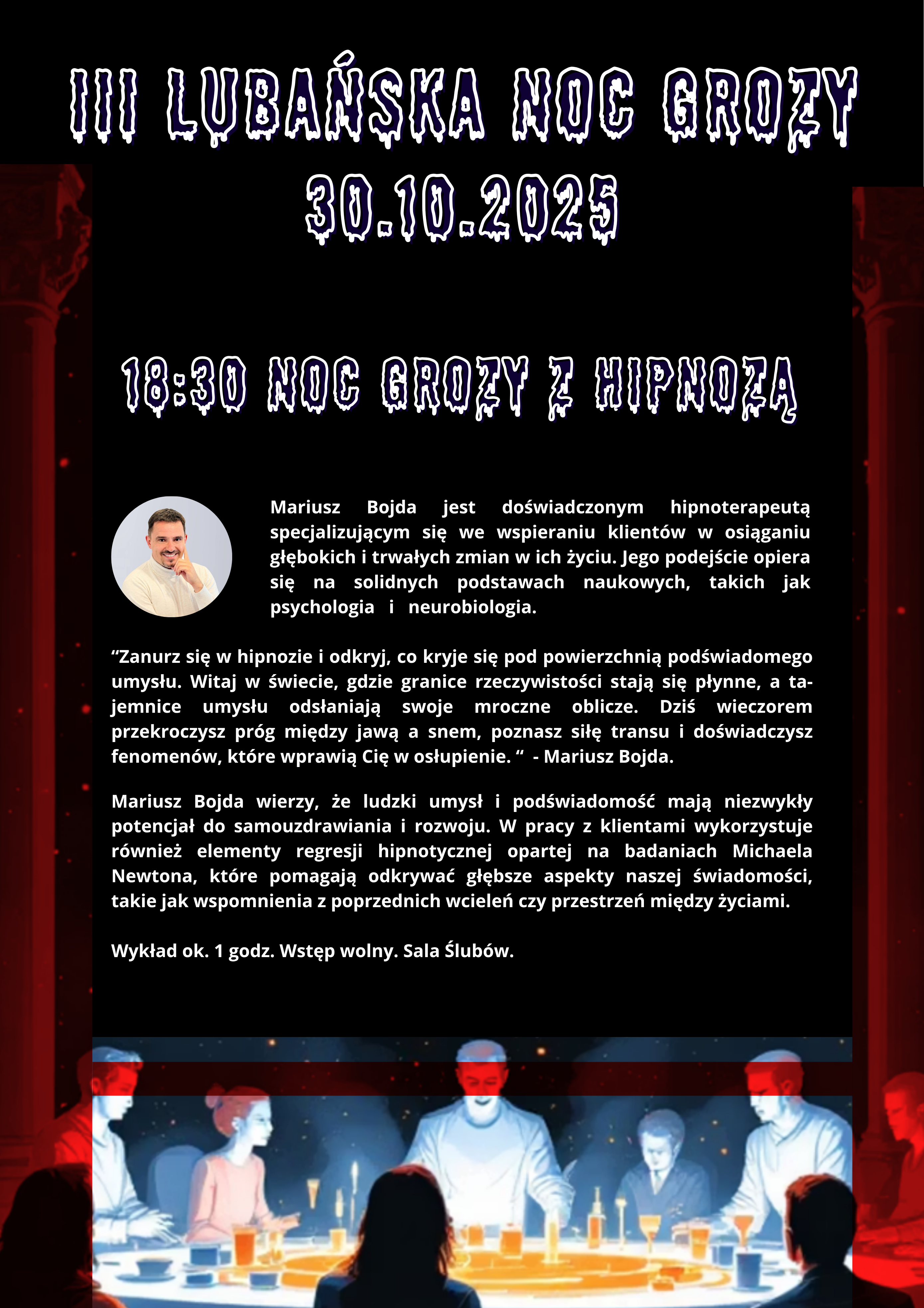 18:30 - Noc Grozy z hipnozą - spotkanie z hipnotyzerem