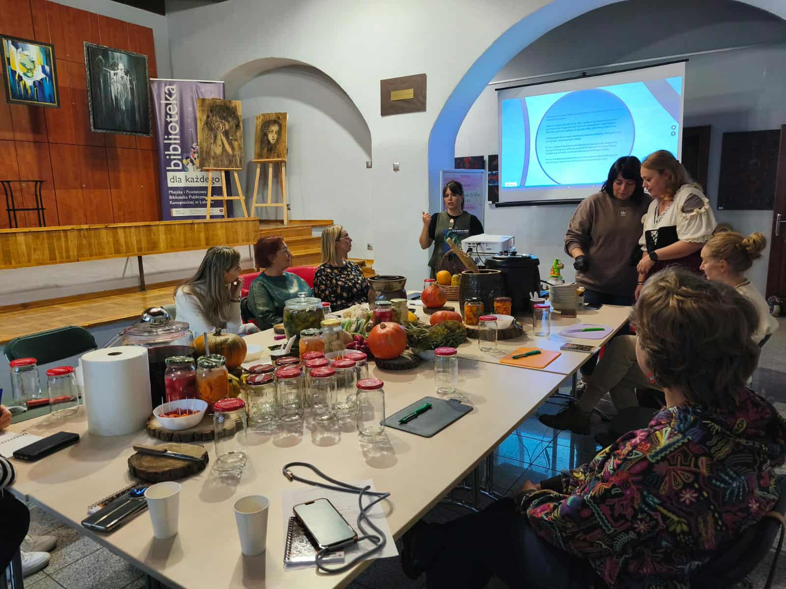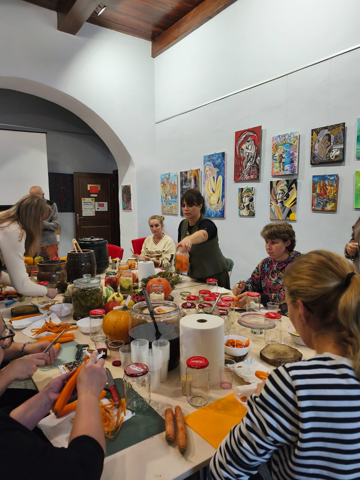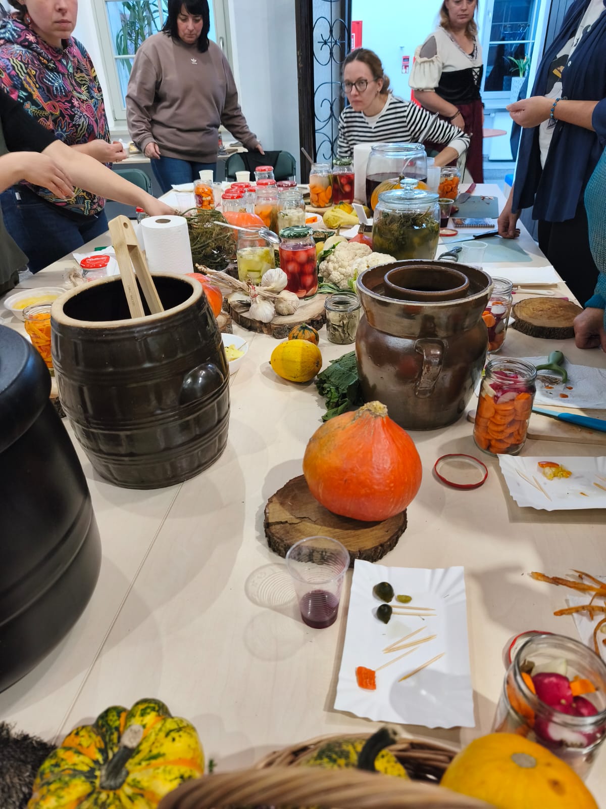 Nie zabrakło również części praktycznej – każdy z uczestników przygotował własny słoik z warzywami, eksperymentując z przyprawami i smakami. Wspólne kiszenie stało się okazją do rozmów, wymiany doświadczeń i rodzinnych przepisów przekazywanych z pokolenia na pokolenie.