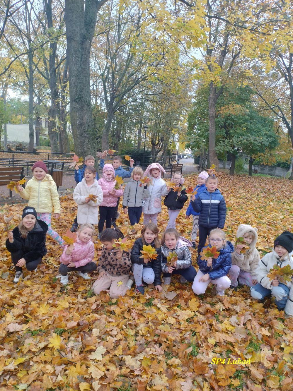 Celem wyprawy było poznanie charakterystycznych cech tej pory roku oraz utrwalenie nazw drzew i rozpoznawanie ich liści. Podczas spaceru dzieci z zainteresowaniem obserwowały otoczenie, zauważyły, że liście przybierają różne barwy – od żółtej, przez pomarańczową, aż po czerwoną i brązową. Uczniowie zbierali kolorowe liście, które później wykorzystają do prac plastycznych w klasie. W trakcie zabawy w parku dzieci wpadły na pomysł, aby z zebranych liści i gałązek zbudować schronienia dla jeży, które przygotowują się do zimowego snu. Wspólnymi siłami stworzyły kilka małych „domków” pod drzewami. Działanie to sprawiło im wiele radości i jednocześnie nauczyło troski o zwierzęta.