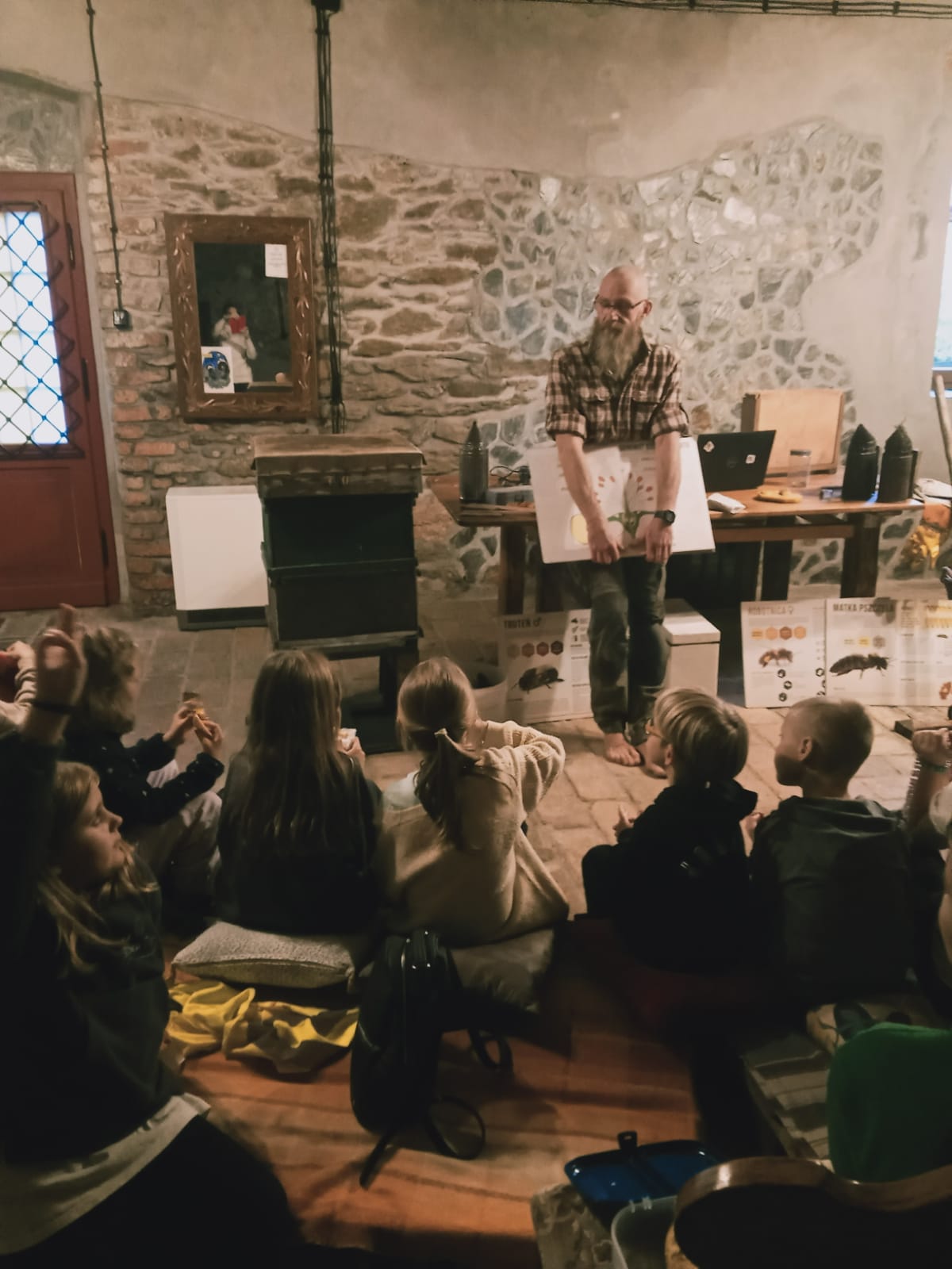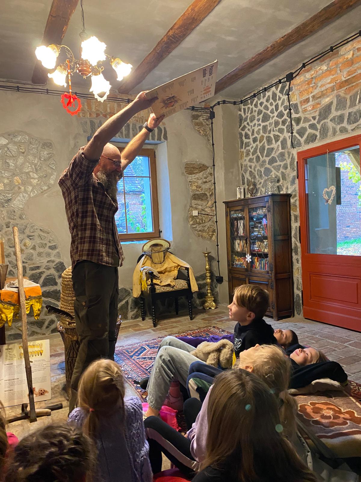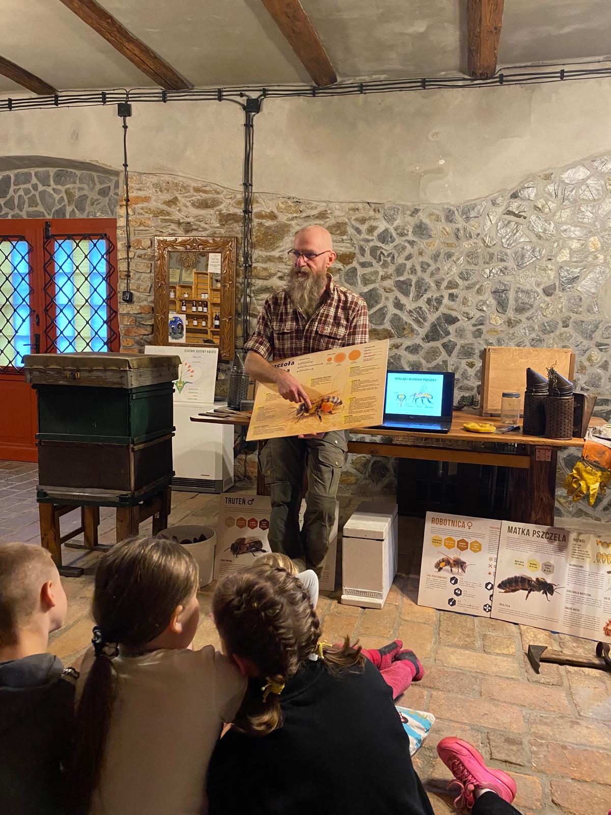 Młodzi podróżnicy mogli się dowiedzieć, jak wygląda praca pszczelarza oraz jak pozyskuje się miód i inne pszczele produkty. Atrakcyjność i nietypowa forma prelekcji z użyciem wielu rekwizytów sprawiła, że dzieci z dużym zainteresowaniem słuchały przekazywanych informacji oraz chętnie odpowiadały na zadawane pytania. Najciekawszym momentem spotkania było podglądanie umieszczonych w szklanym ulu owadów. Podczas warsztatów każdy uczestnik mógł skosztować jak smakuje pierzga i miód. Warsztaty zostały zwieńczone własnoręcznie wykonana świeczką z plastra miodu.