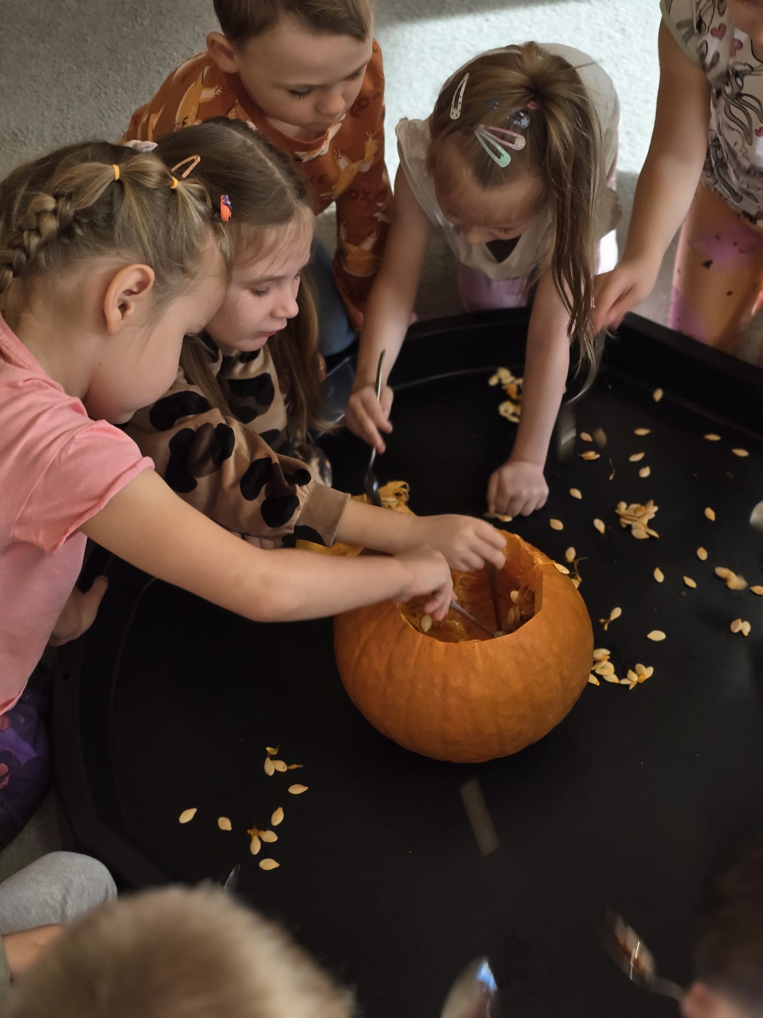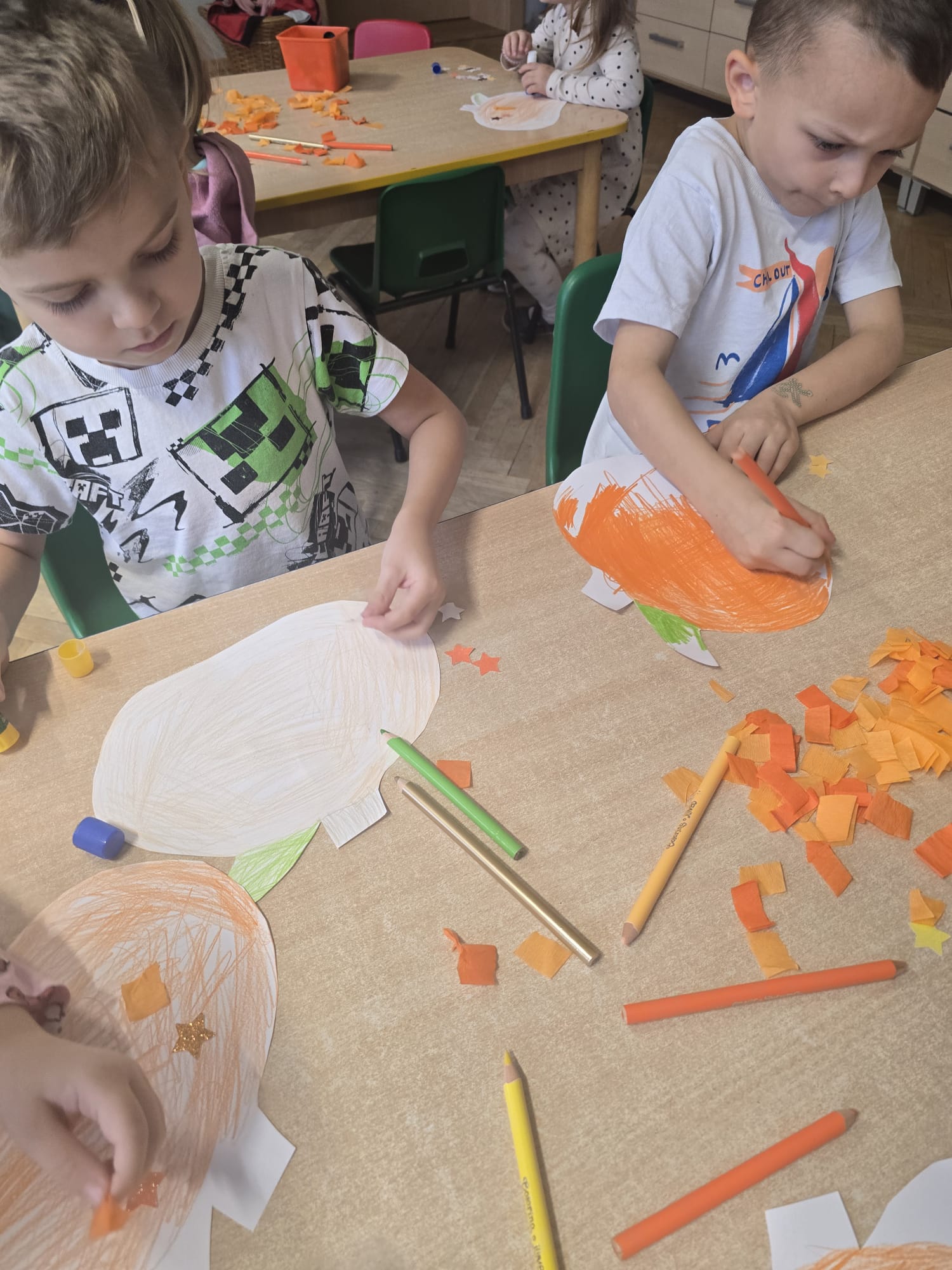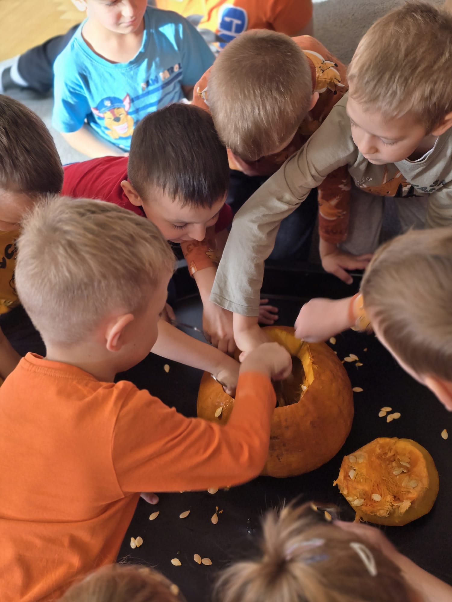 Wspólnie omówiono wygląd, kształt, kolor i zapach tego warzywa, rozwijając umiejętność obserwacji i wypowiadania się. W części praktycznej dzieci uczestniczyły w zabawach badawczych i matematycznych. Wykonały rówież prace plastyczne z motywem dyni. Zajęcia sprzyjały rozwijaniu ciekawości poznawczej i współpracy w grupie. Dzień Dyni był nie tylko radosny i kolorowy, ale przede wszystkim wartościowy pod względem edukacyjnym.
