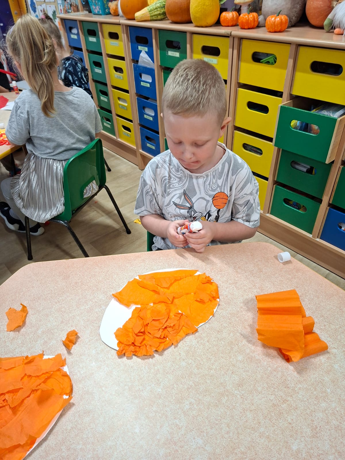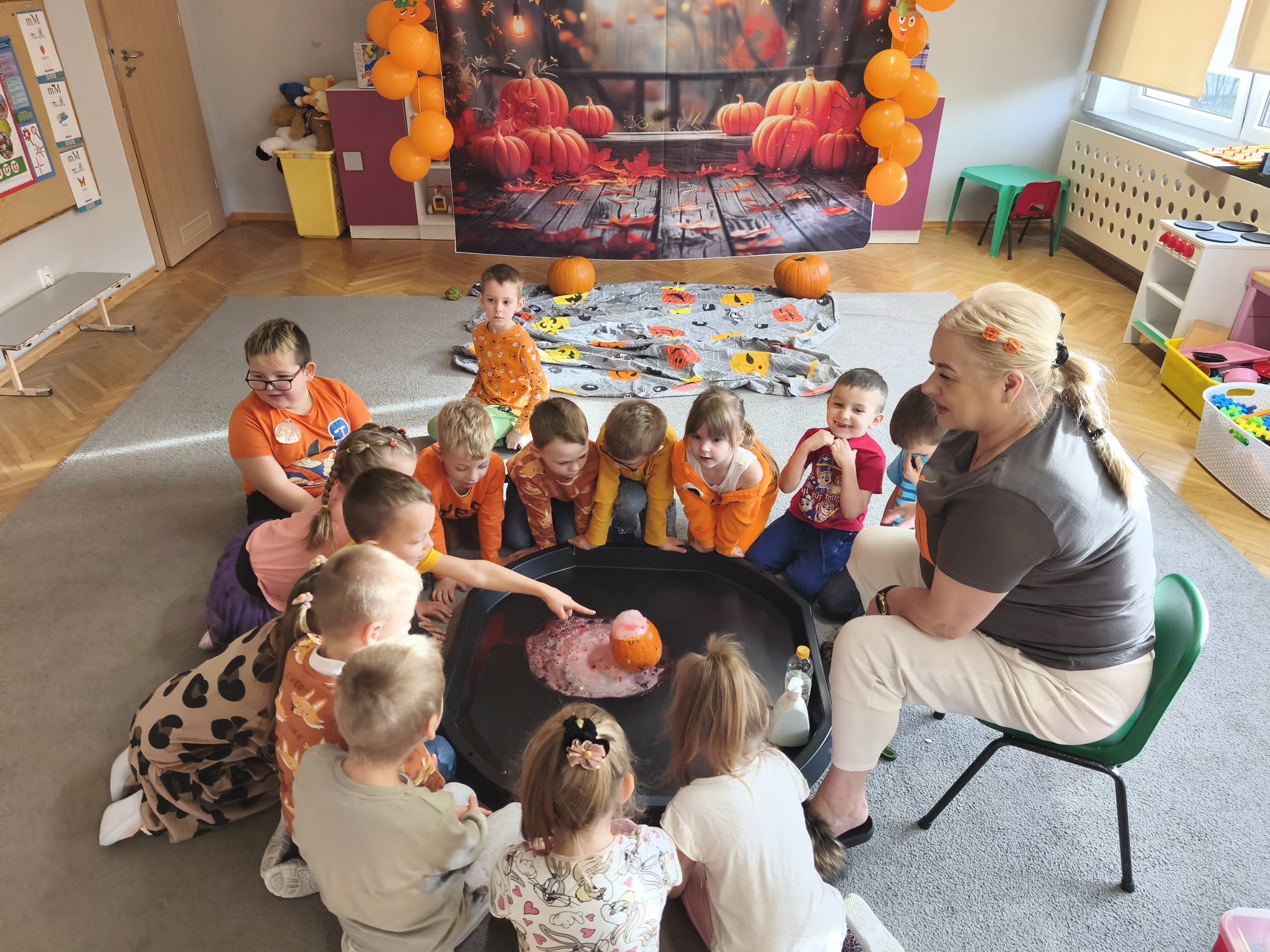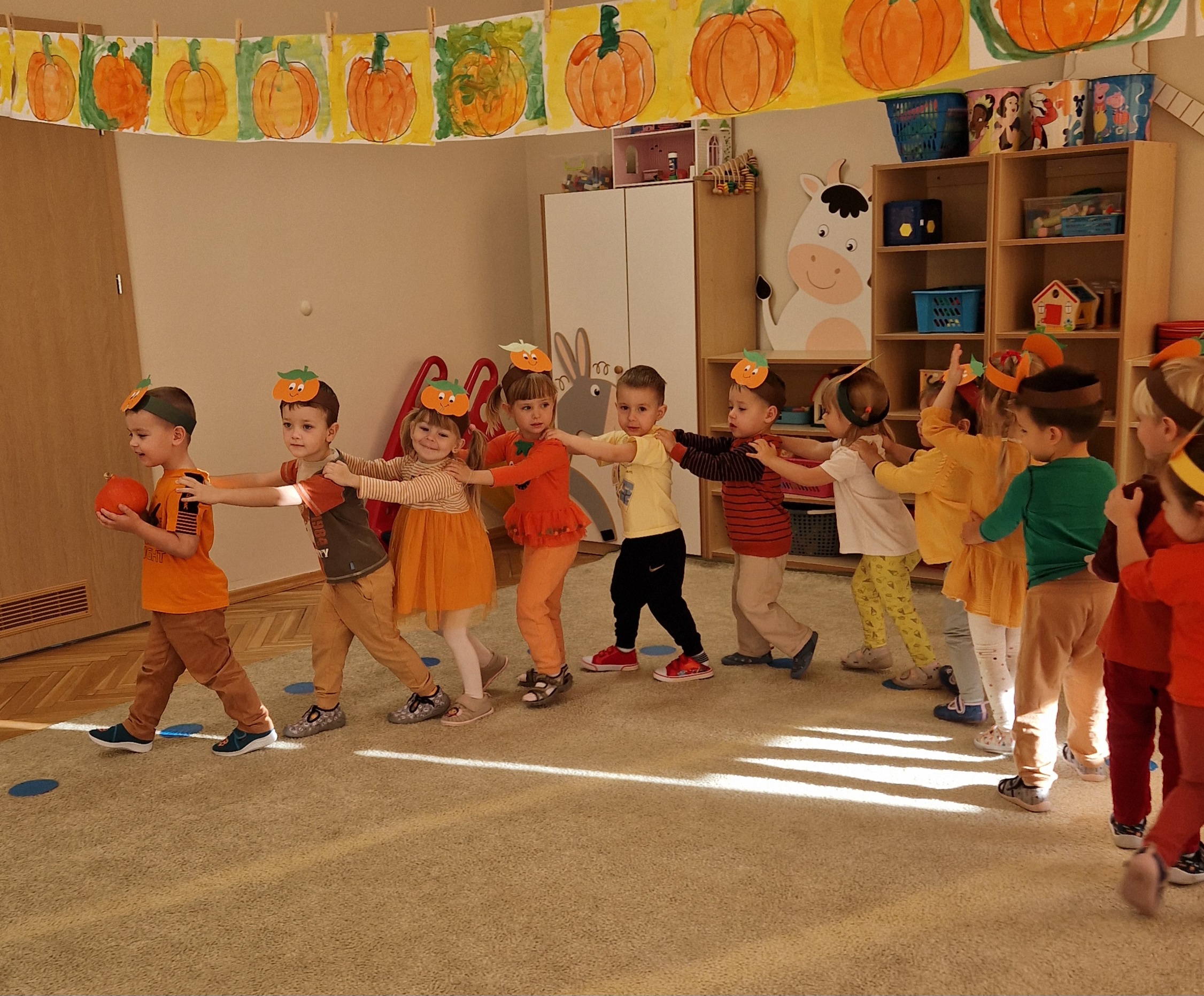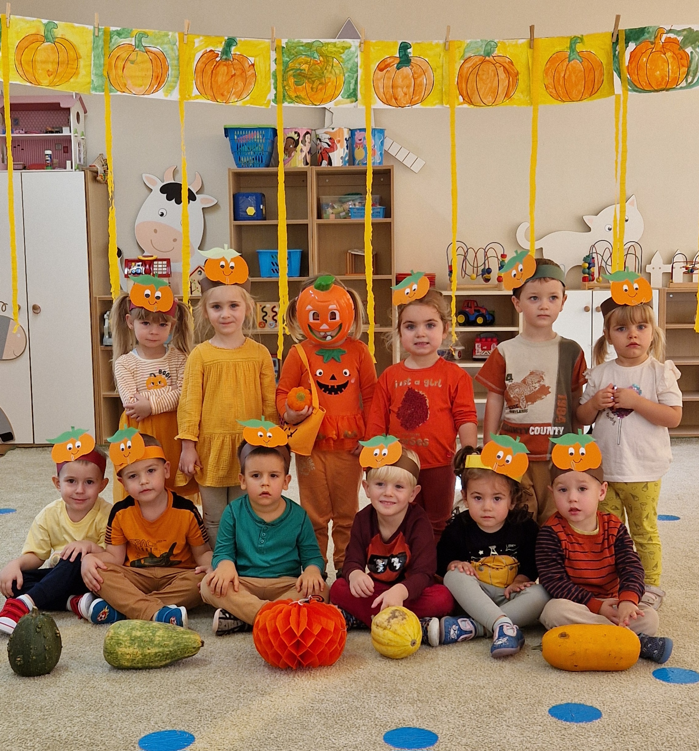 W naszym przedszkolu obchodziliśmy wesołe i pomarańczowe święto - Dzień Dyni. Dzieci przyszły ubrane w stroje w odcieniach pomarańczy, a w sali pojawiły się dyniowe dekoracje. Podczas zajęć przedszkolaki poznały różne gatunki dyni, dowiedziały się, w jaki sposób rośnie i jakie ma zastosowanie w kuchni, oraz w dekoracjach jesiennych.
