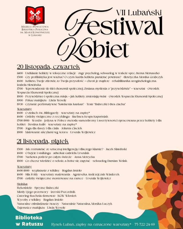 Wiemy, że czekaliście na pełny plan naszego VII Lubański Festiwal Kobiet. A więc oto i on! Zaczynamy już w czwartek o 14:00.