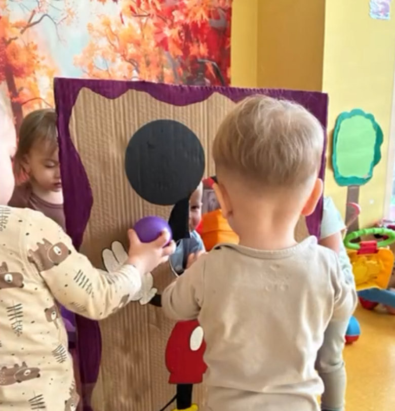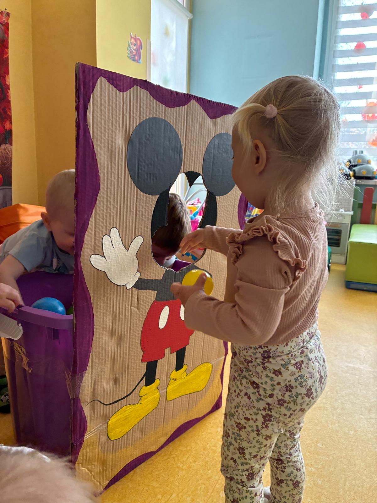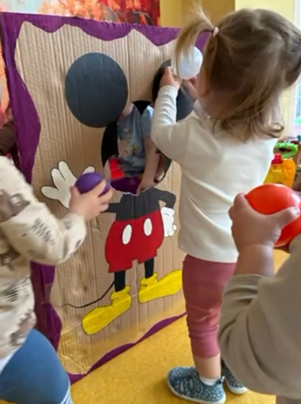 Dzień Myszki Miki. Biedroneczki pozowały do zdjęć w Myszkobudce. Po sesji zdjęciowej był czas na „nakarmienie” naszej Myszki kolorowymi piłeczkami. Zabawy z piłką to nie tylko doskonały sposób na aktywne spędzenie czasu, ale także świetna okazja do rozwijania koordynacji ruchowej, refleksu oraz umiejętności społecznych u dzieci. Cele : Poprawa sprawności dłoni i palców: manipulowanie małymi piłeczkami wzmacnia mięśnie dłoni i poprawia precyzję ruchów. Wsparcie koordynacji ruchowej,zabawy z piłeczkami ,pomagają w rozwoju koordynacji wzrokowo-ruchowej.