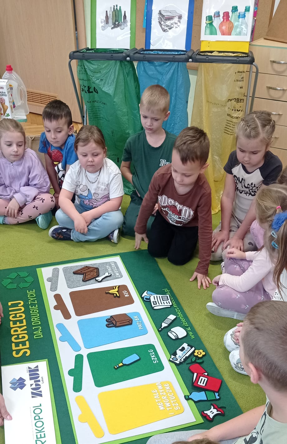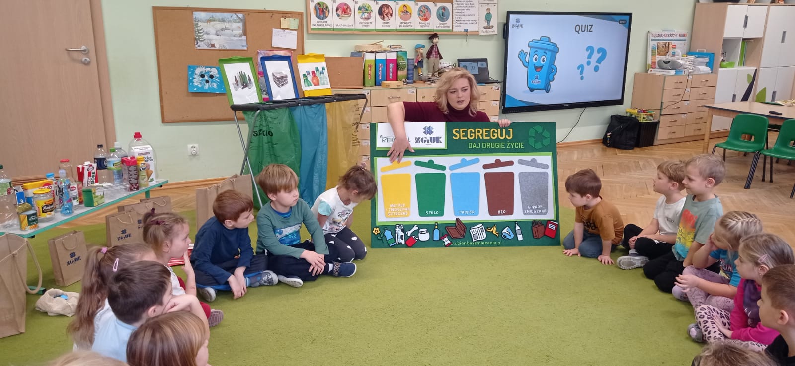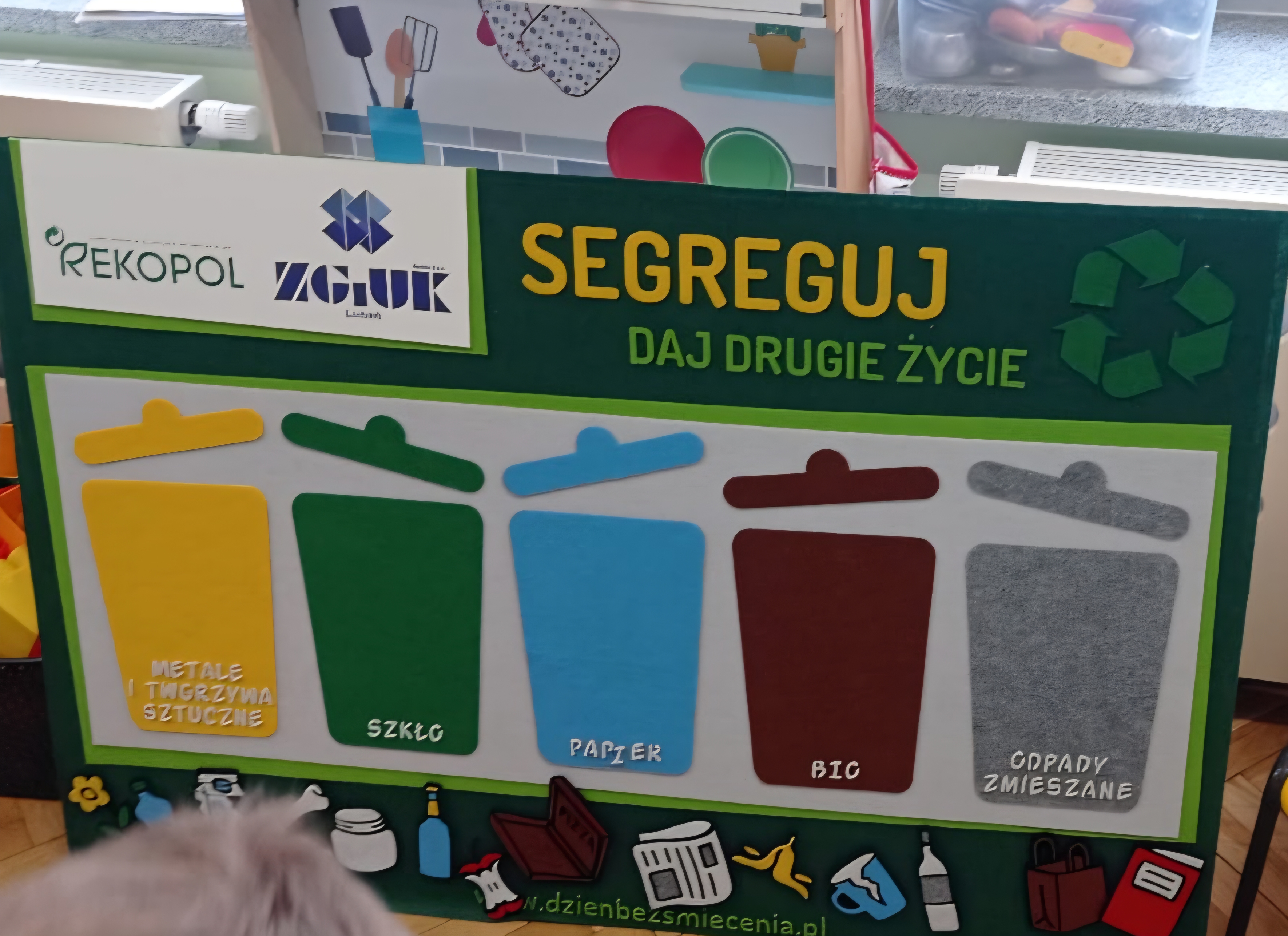 Dzieci z PM nr 5 im. J. Tuwima w Lubaniu miały możliwość spotkania edukacyjnego z pracownikami ZGiUK w Lubaniu. Poznały jak prawidłowo segregować odpady używając kolorowych pojemników.