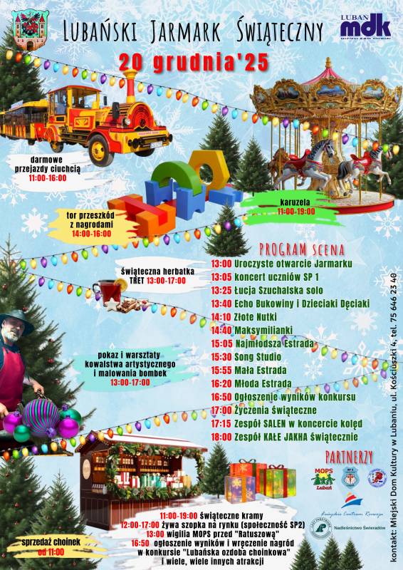 O 16:50 czeka nas także ogłoszenie wyników i wręczenie nagród w konkursie „Lubańska ozdoba choinkowa”.