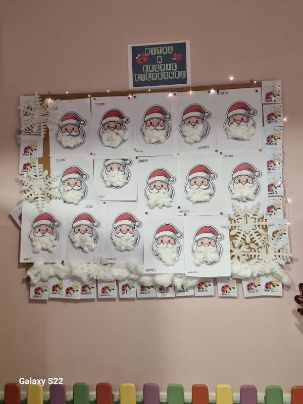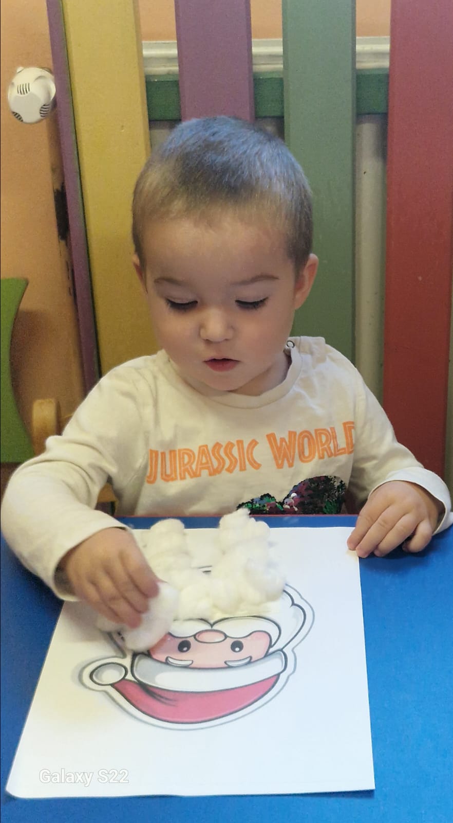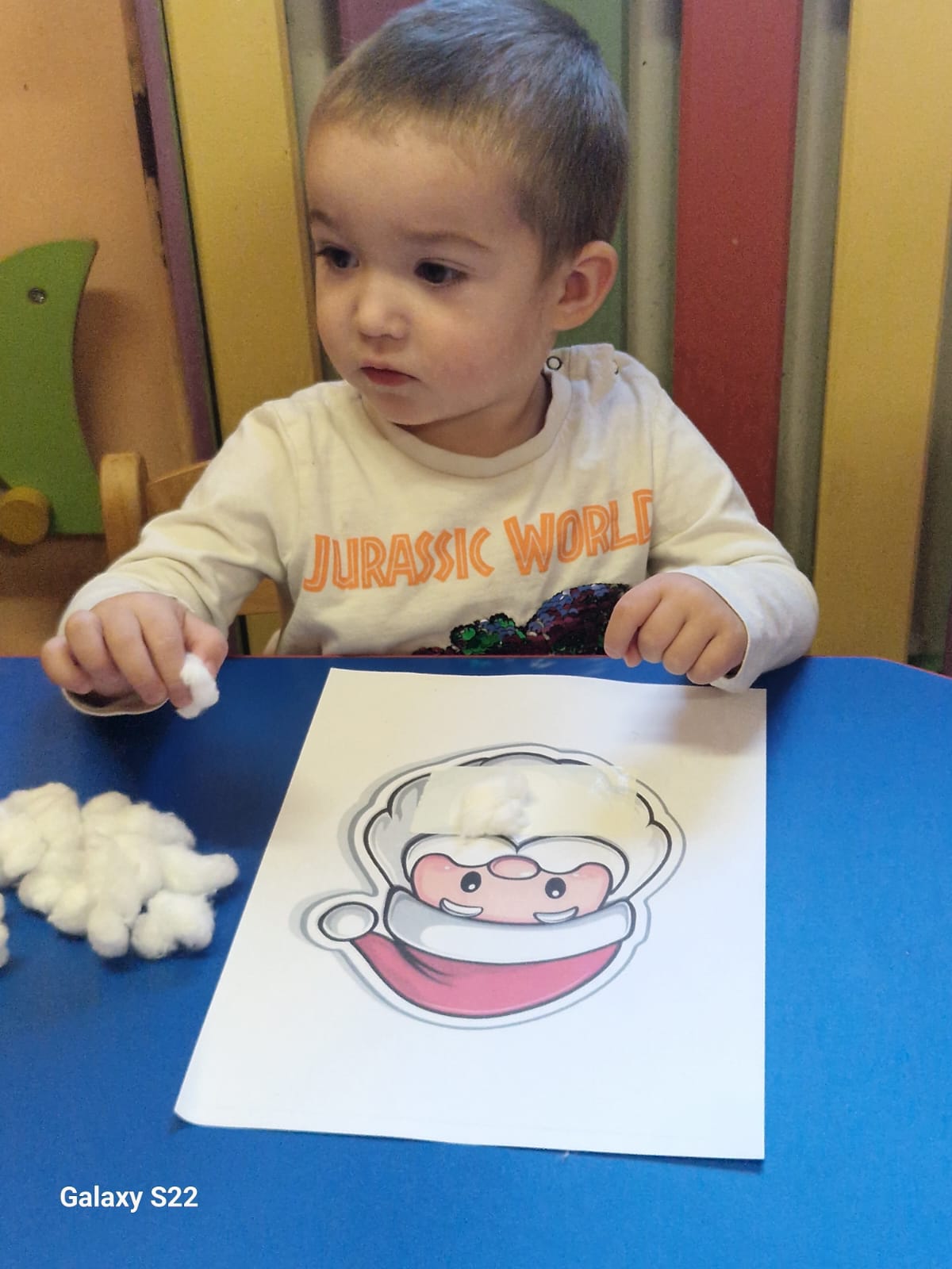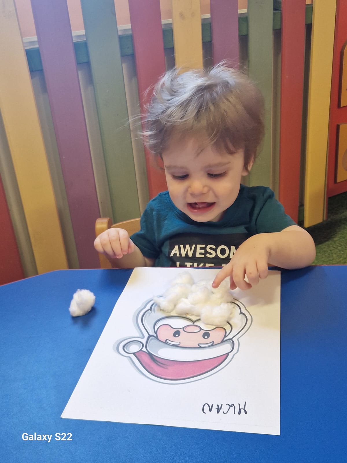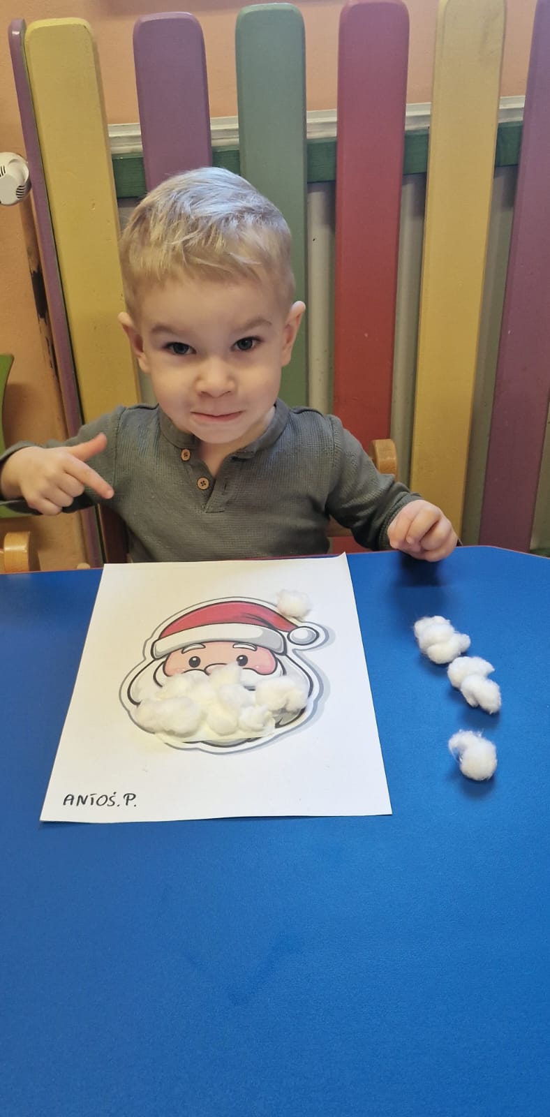 Biedronki , ozdabiały zimowego bałwanka ,przyklejały mu guziki i kolorowy szalik. W czapeczkach bałwanków świetnie wczuły się w zimowy klimat i z radością tworzyły swoje prace. Cele: - rozwój motoryki małej, -koordynacja oko-ręka, -kreatywność i wyobraźnia,