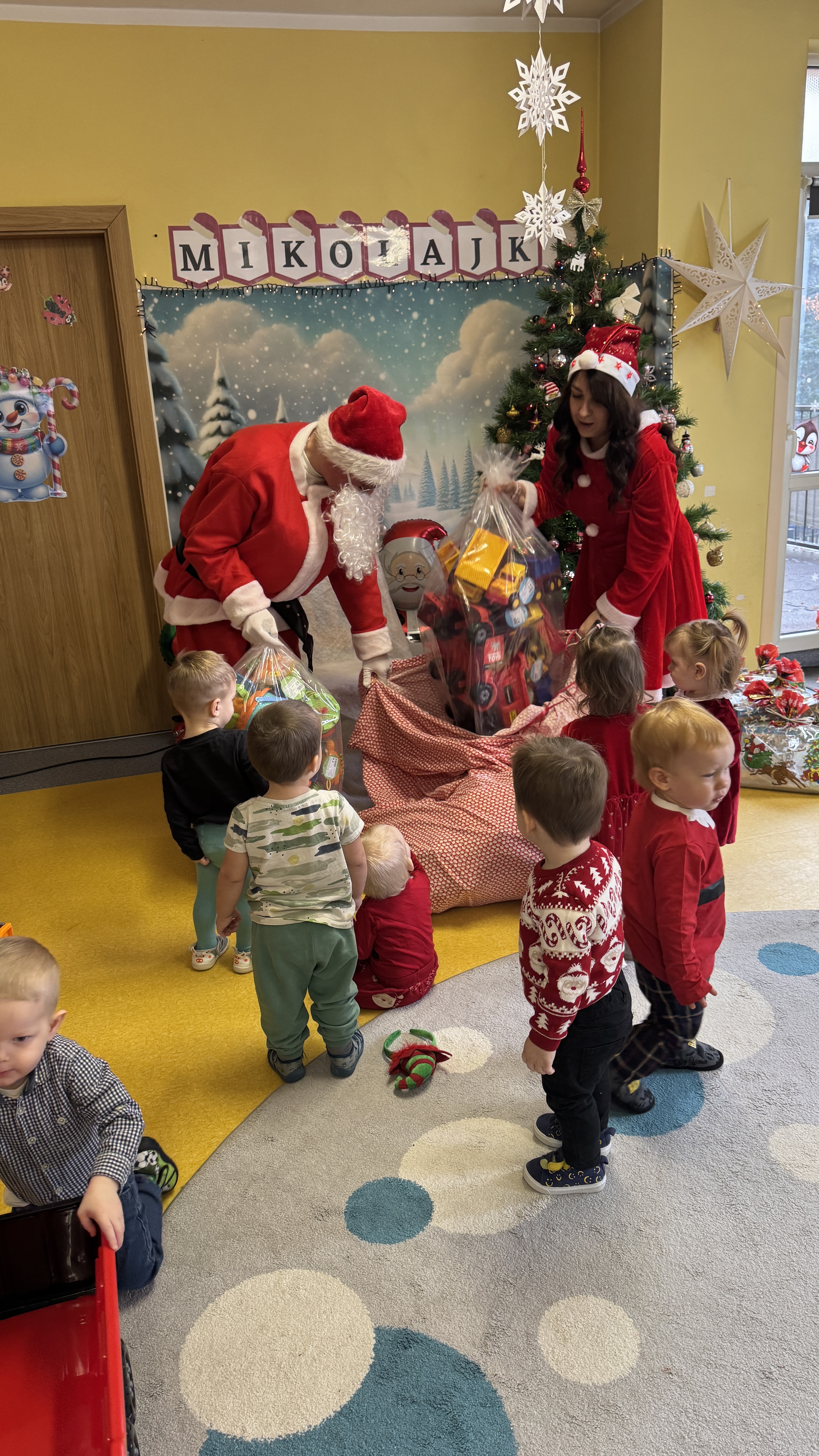 Święty Mikołaj w żłobku, to magiczne wydarzenie , podczas którego Mikołaj z wielkim workiem prezentów odwiedza maluchy , wywołując radość i uśmiech.