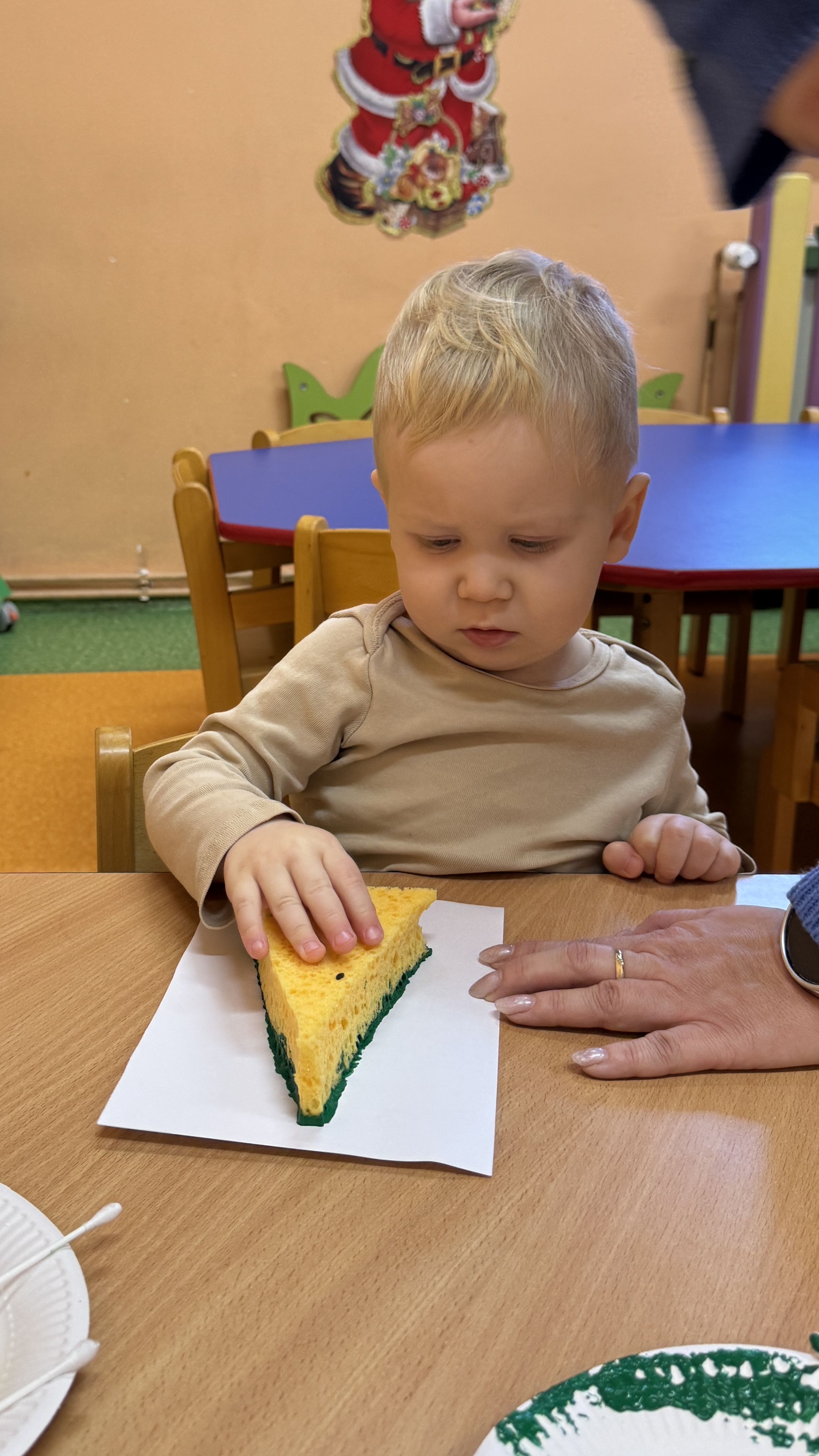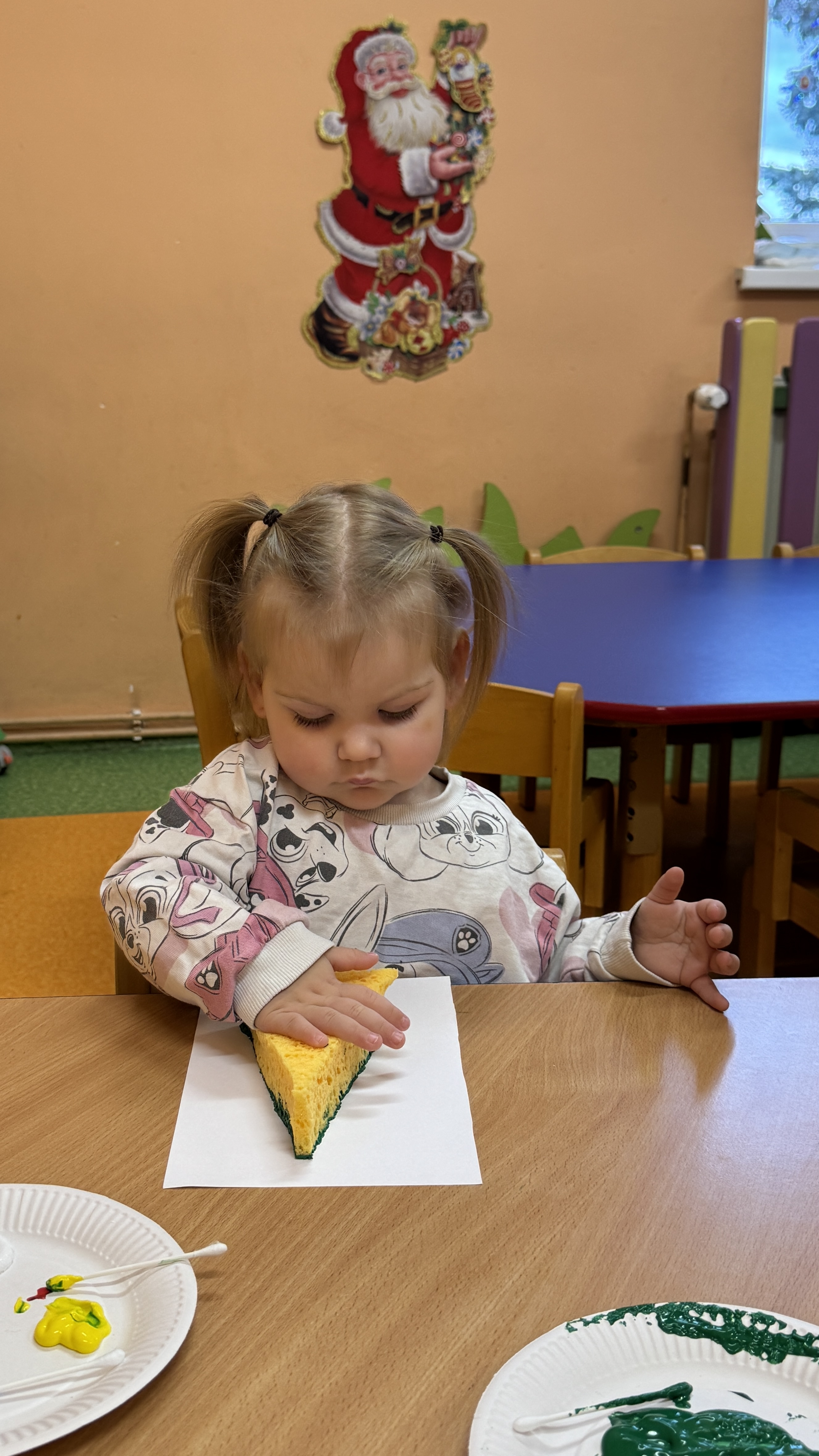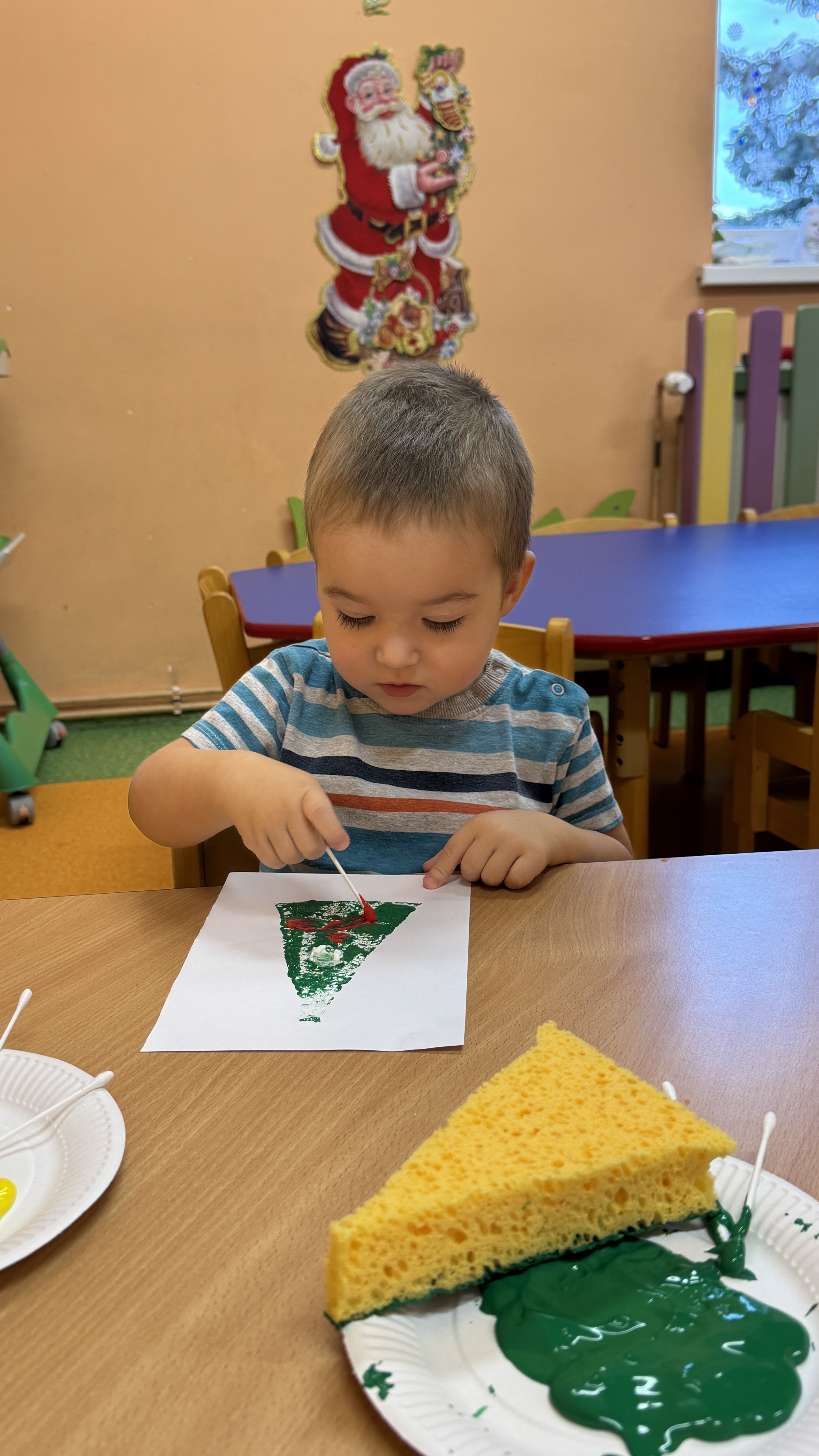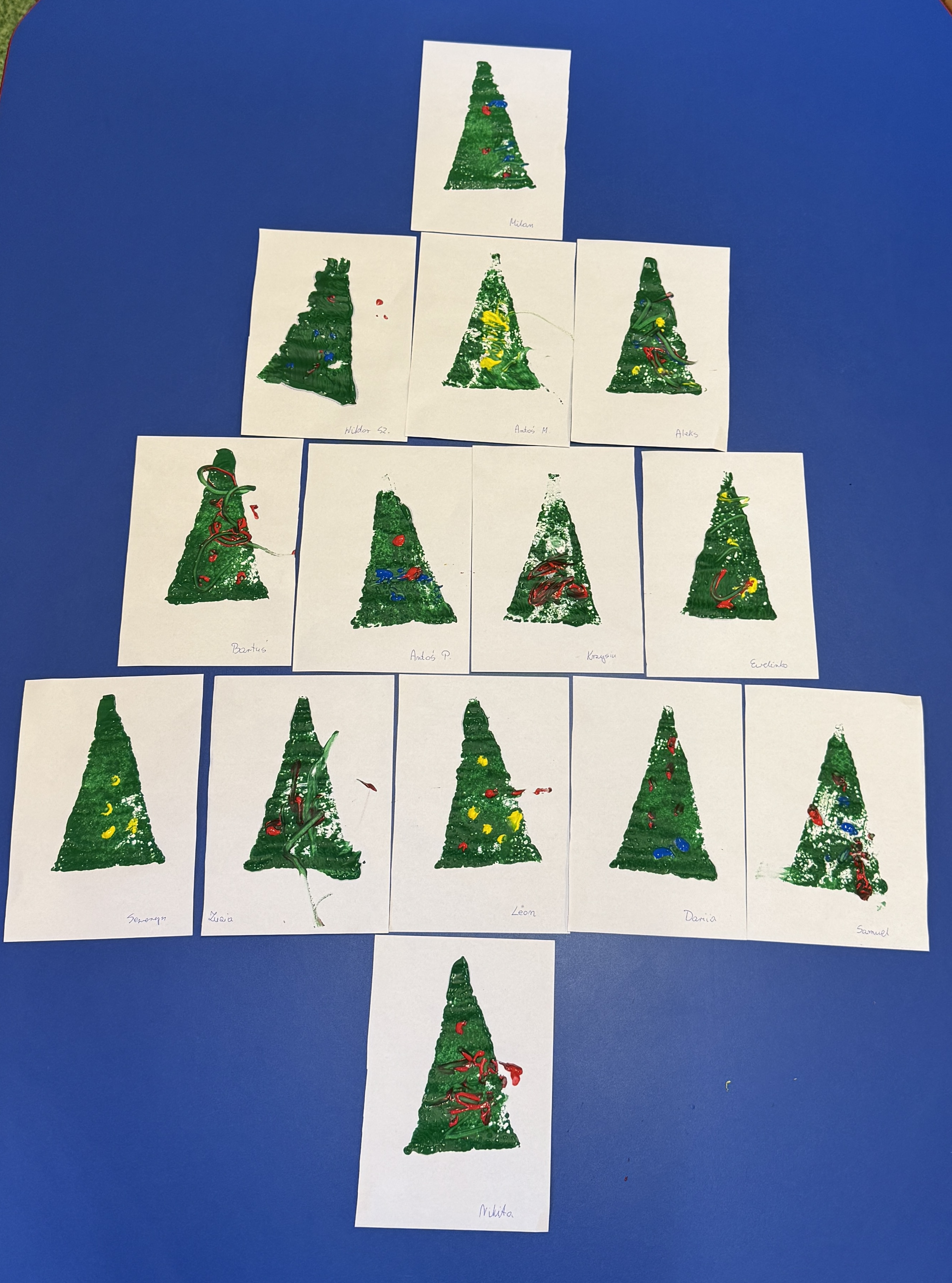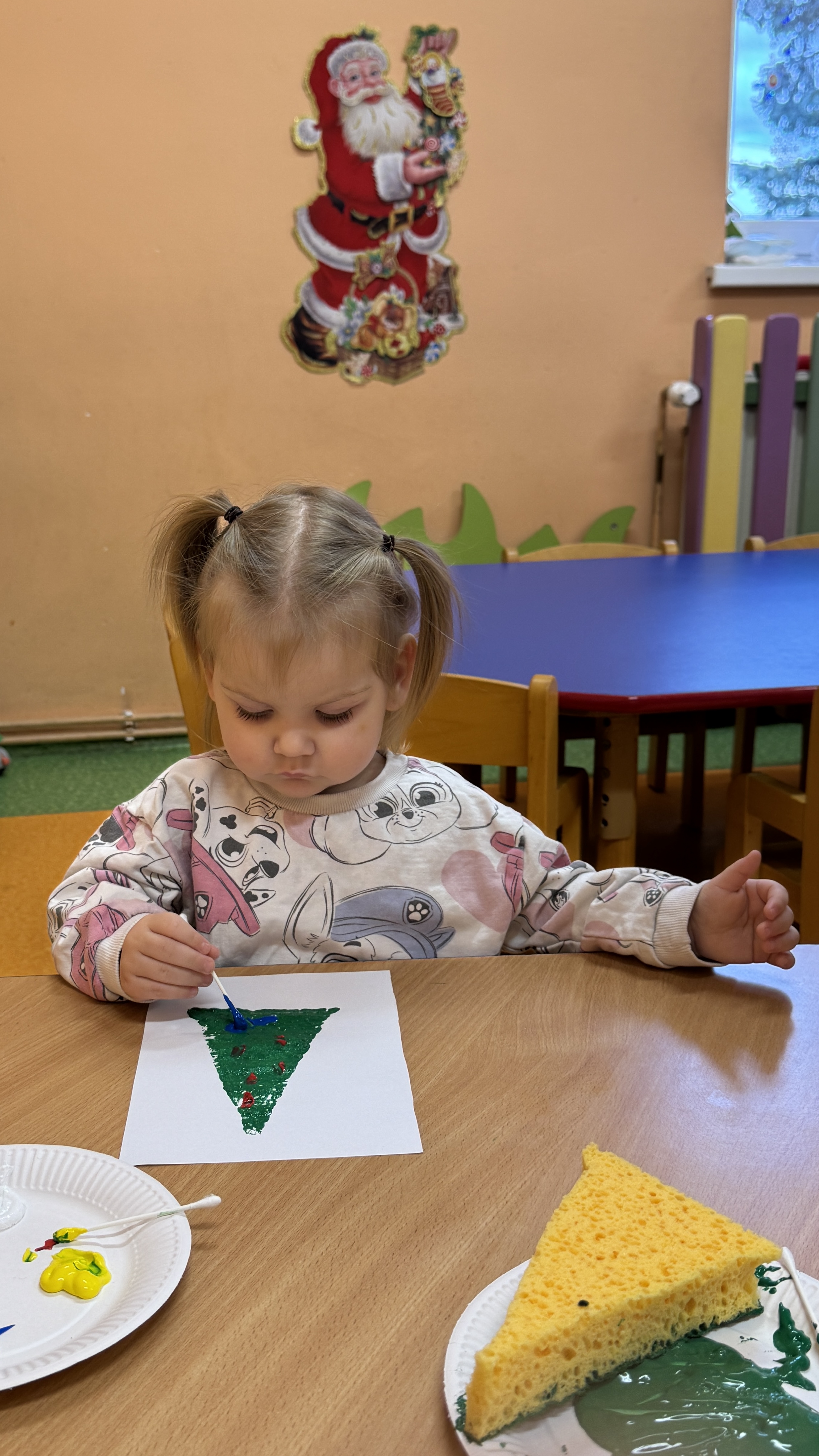 Nasze Biedroneczki dziś stemplowały choinki gąbką, ozdabiając je kolorowymi bombkami z patyczków tworząc świąteczne prace plastyczne. Nasze Maluszki rozwijały przy tym sprawność rąk i kreatywność.