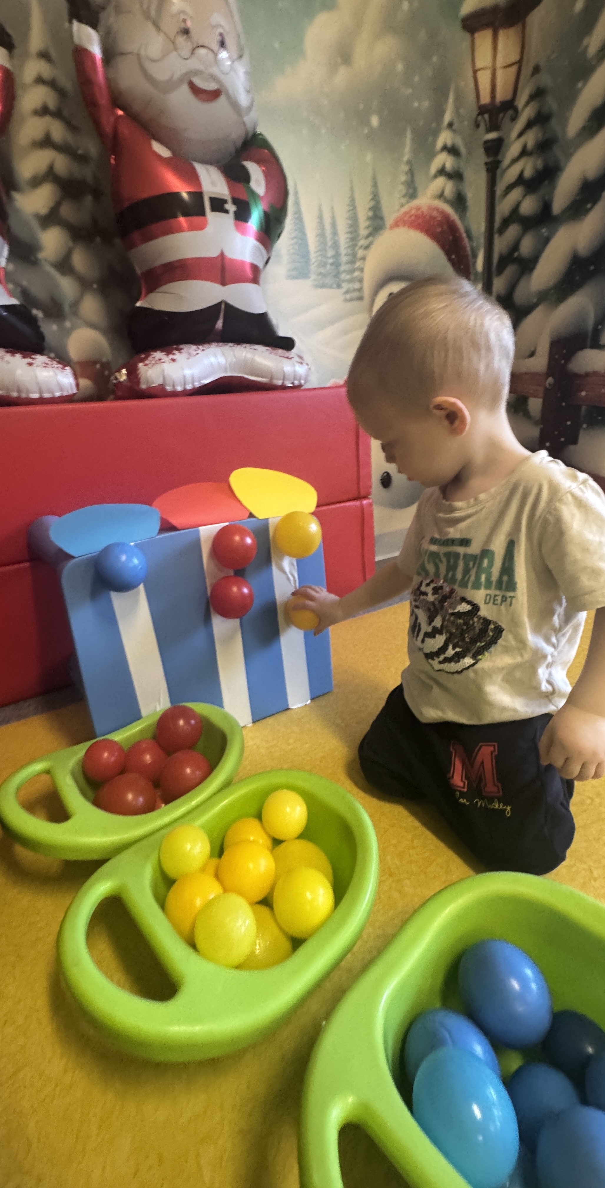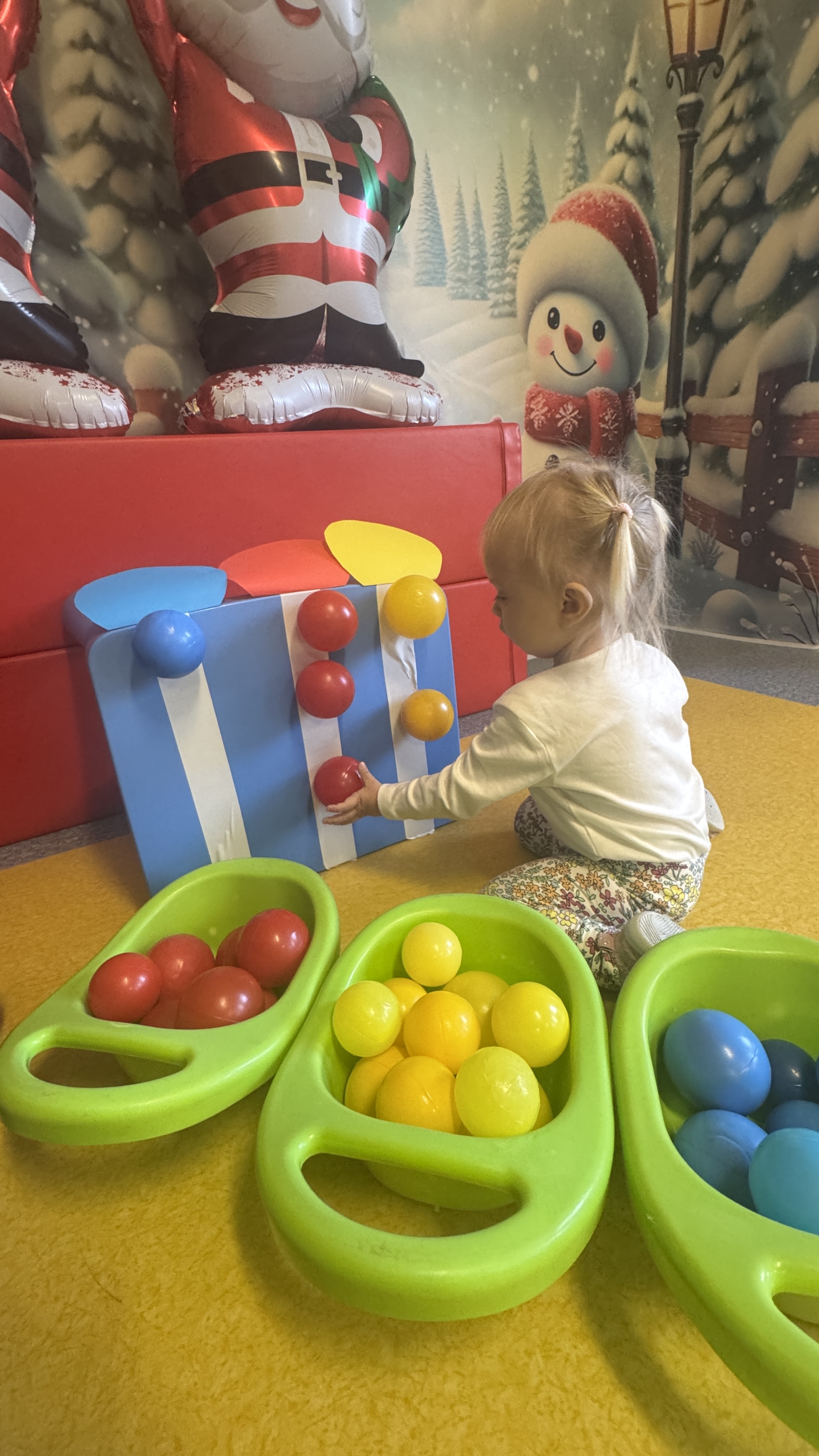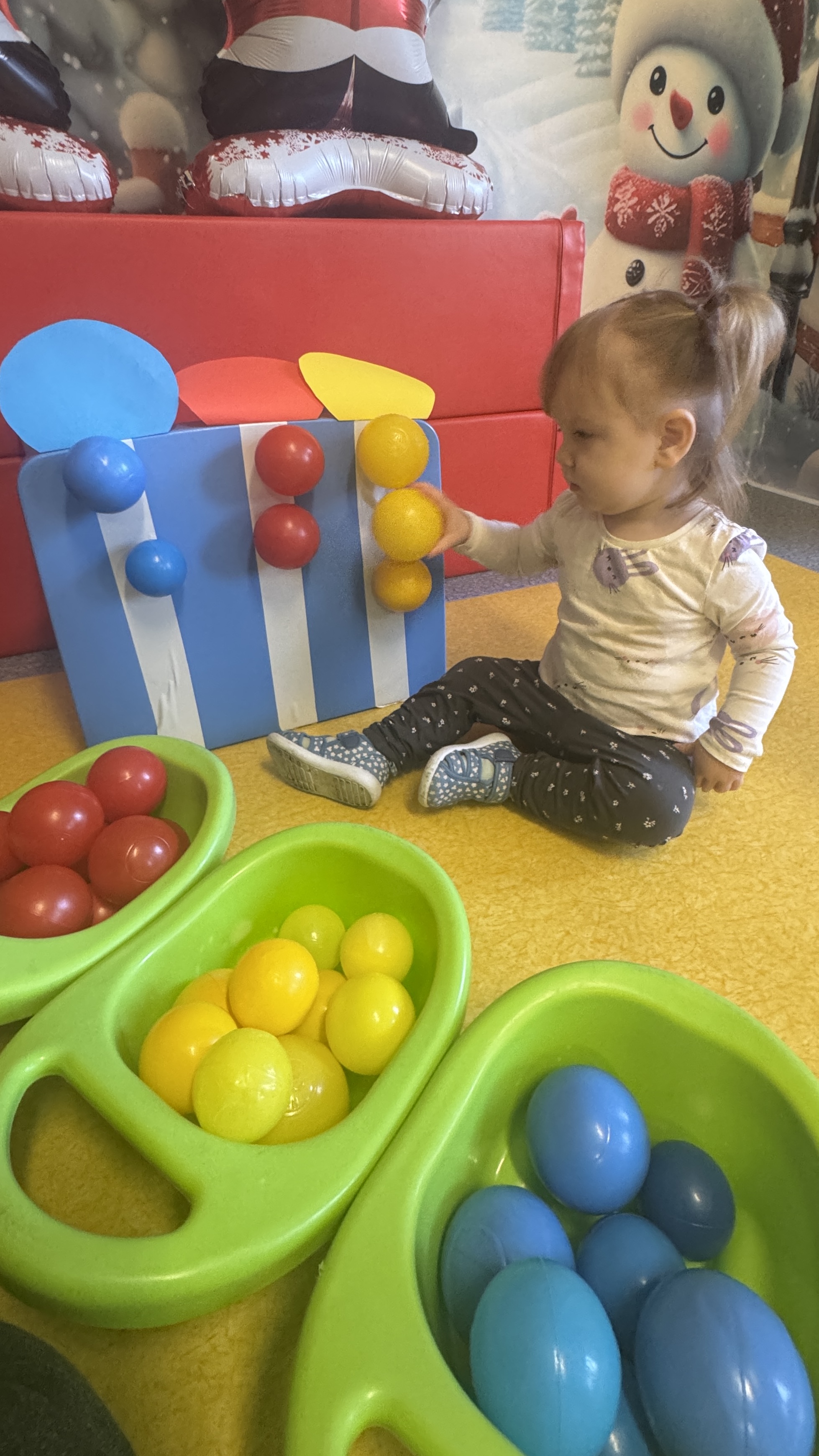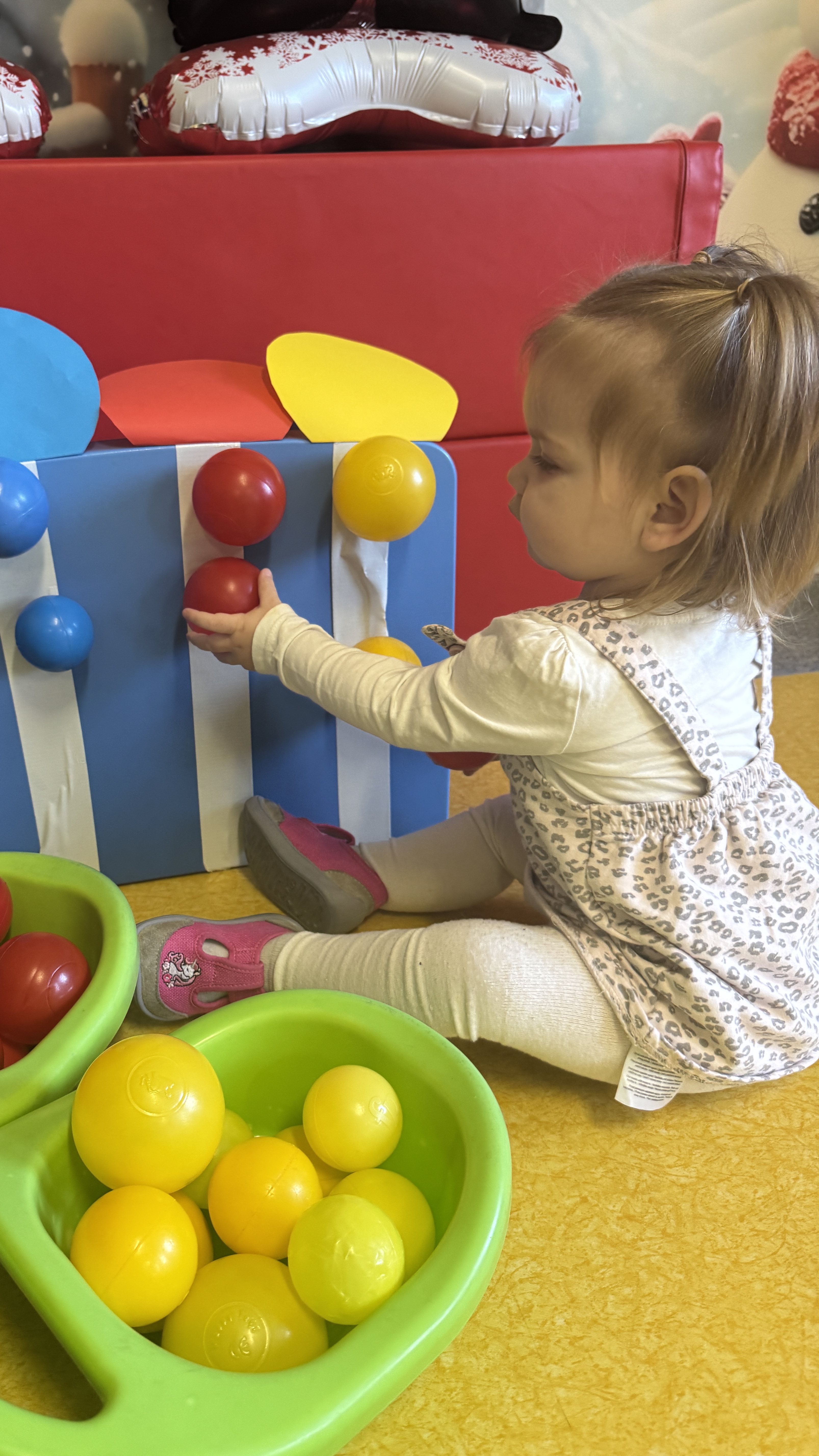 Podczas dzisiejszych zajęć nasze Biedroneczki ćwiczyły rozpoznawanie i dopasowywanie kolorów bawiąc się kolorowymi piłeczkami. Zabawa ta rozwijała umiejętność rozpoznawania kolorów, spostrzegawczość i motorykę małą dzięki chwytaniu i naklejaniu piłeczek.