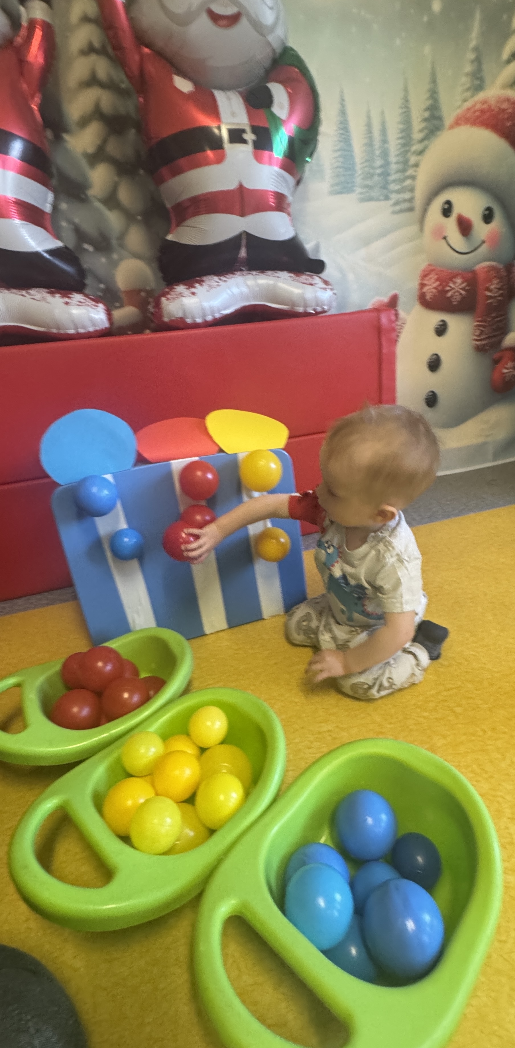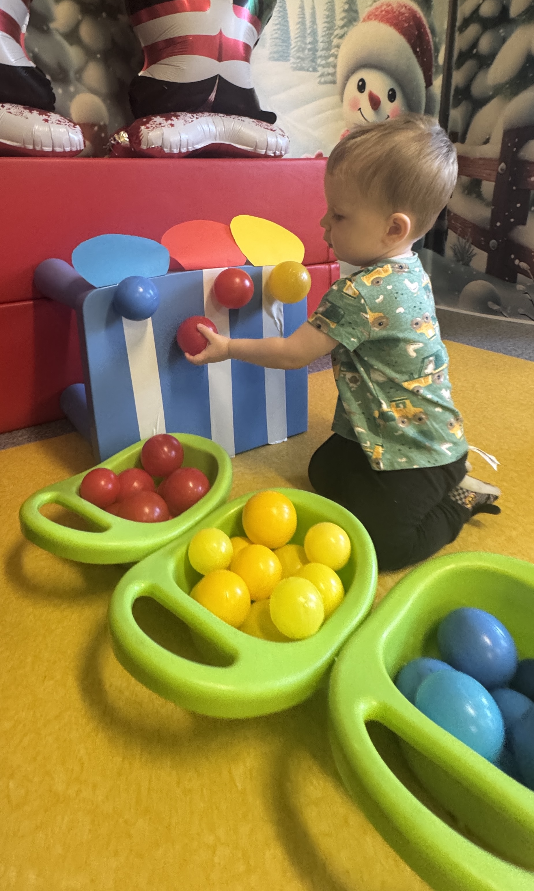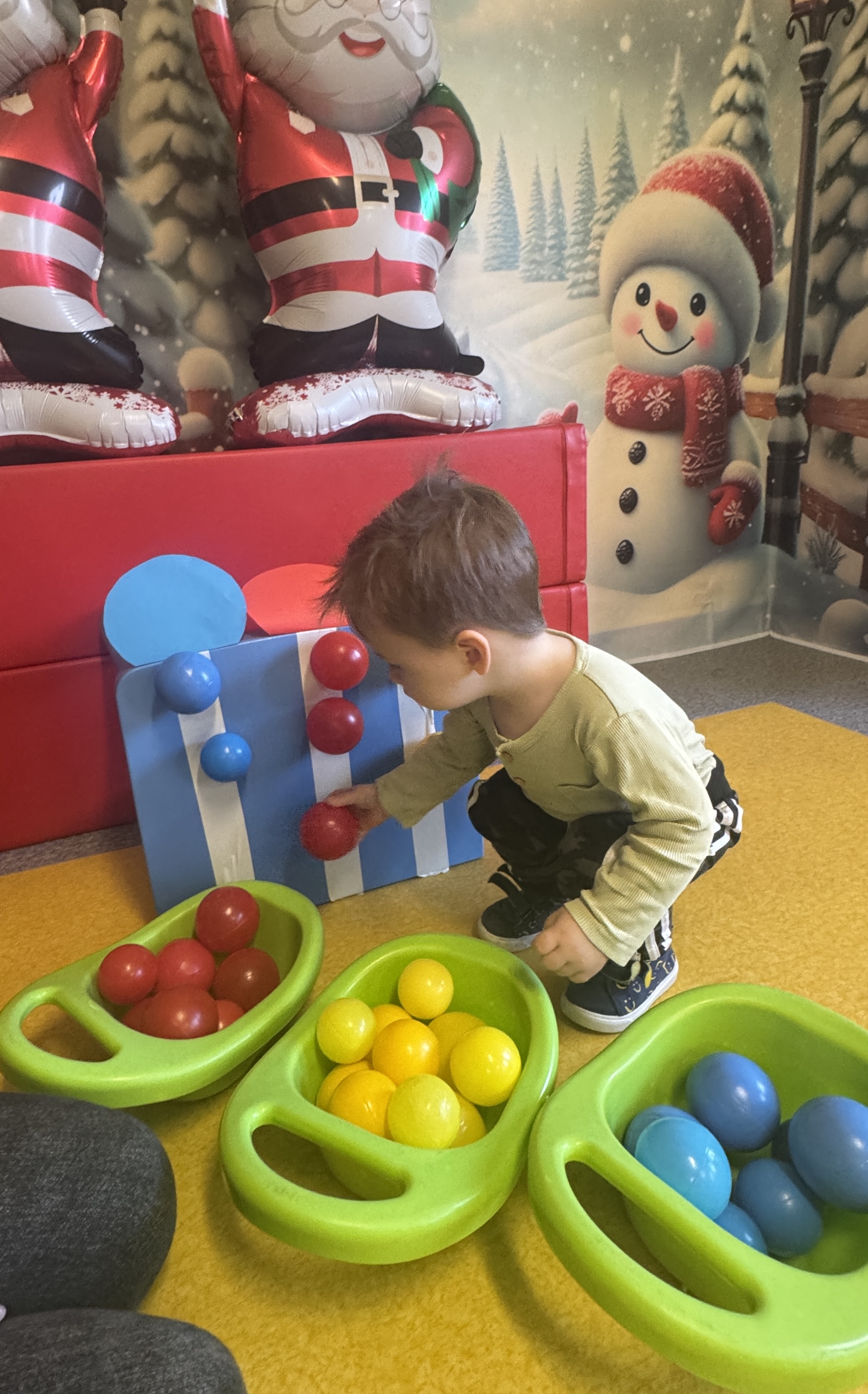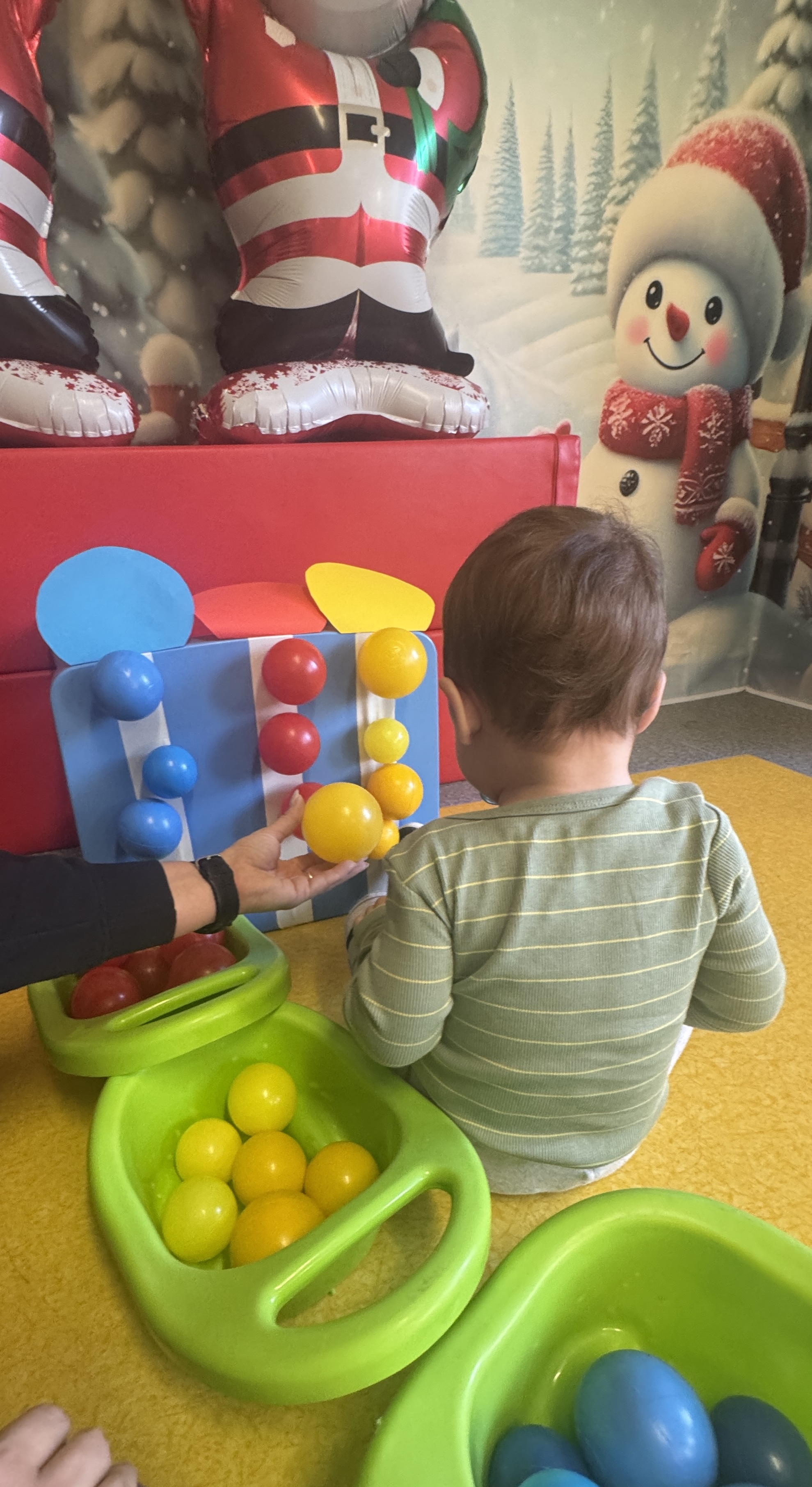 Podczas dzisiejszych zajęć nasze Biedroneczki ćwiczyły rozpoznawanie i dopasowywanie kolorów bawiąc się kolorowymi piłeczkami. Zabawa ta rozwijała umiejętność rozpoznawania kolorów, spostrzegawczość i motorykę małą dzięki chwytaniu i naklejaniu piłeczek.