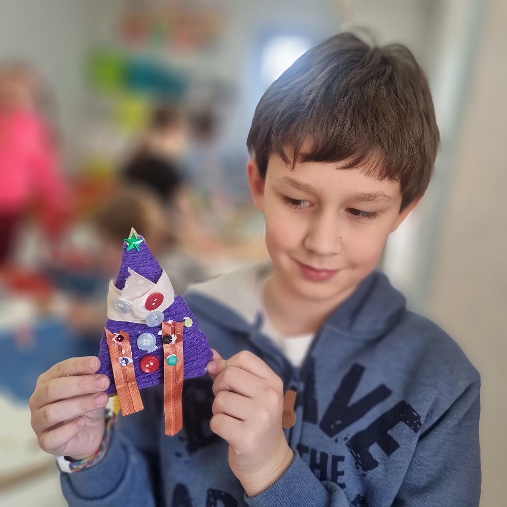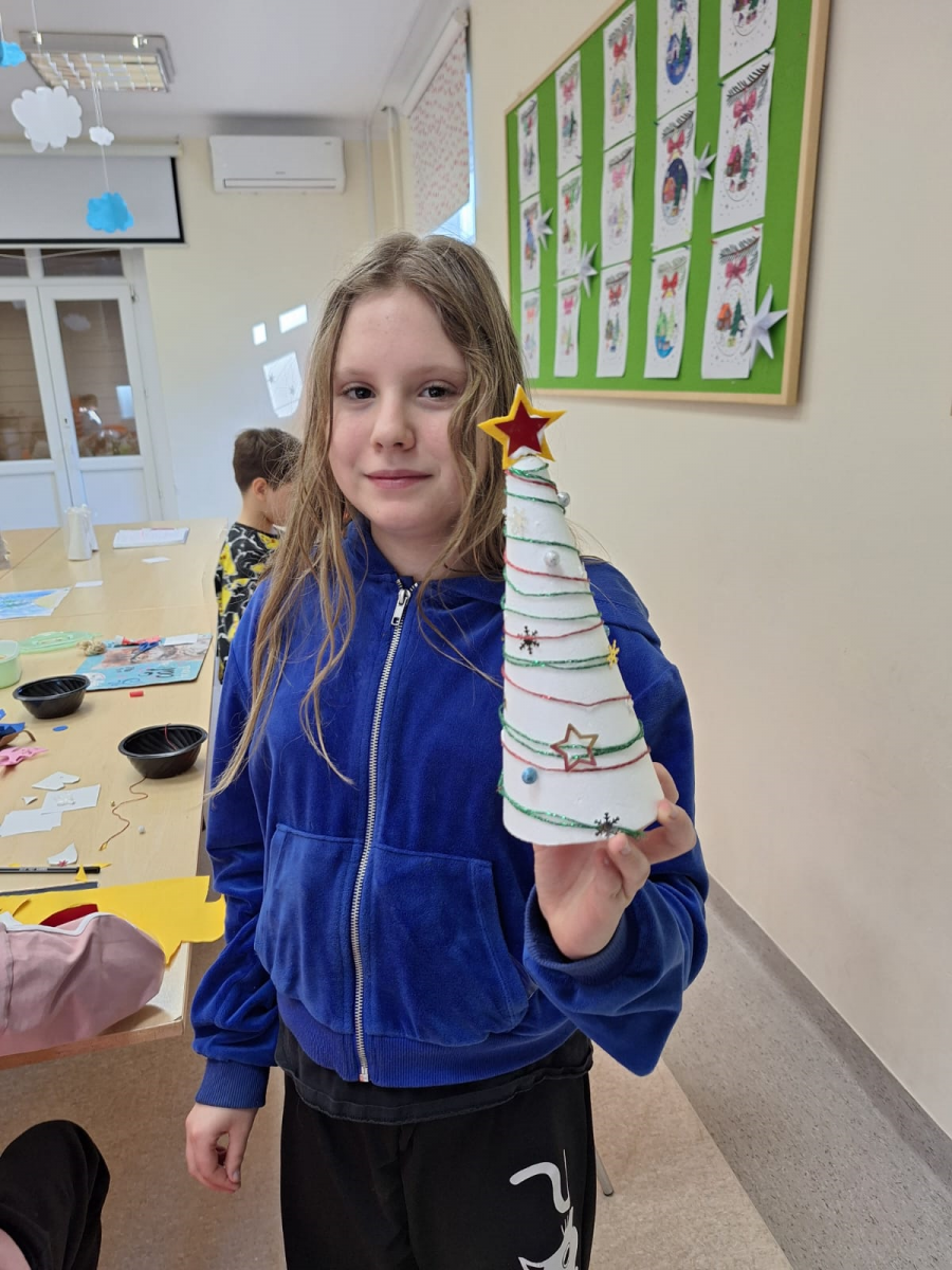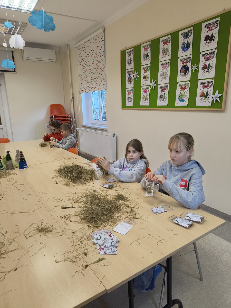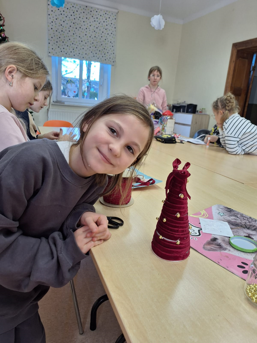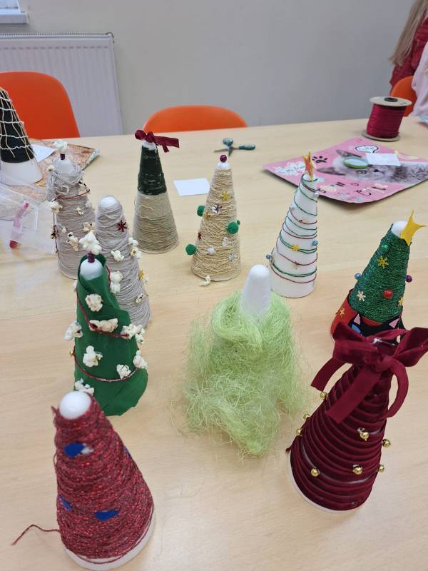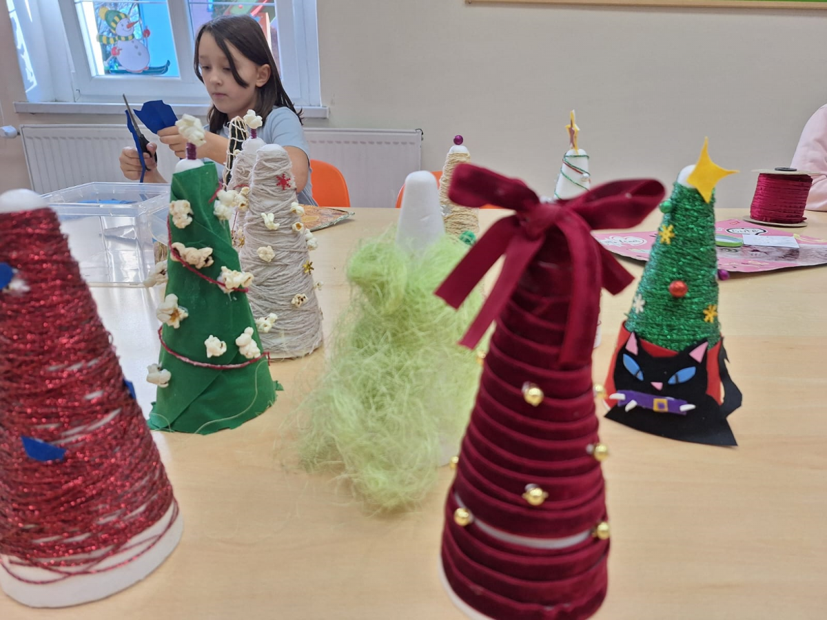 W naszej świetlicy tworzone są przepiękne ozdoby świąteczne. Choinki ozdabiamy nie tylko koralikami i gwiazdkami, ale także… popcornem. Efekt jest powalający.
