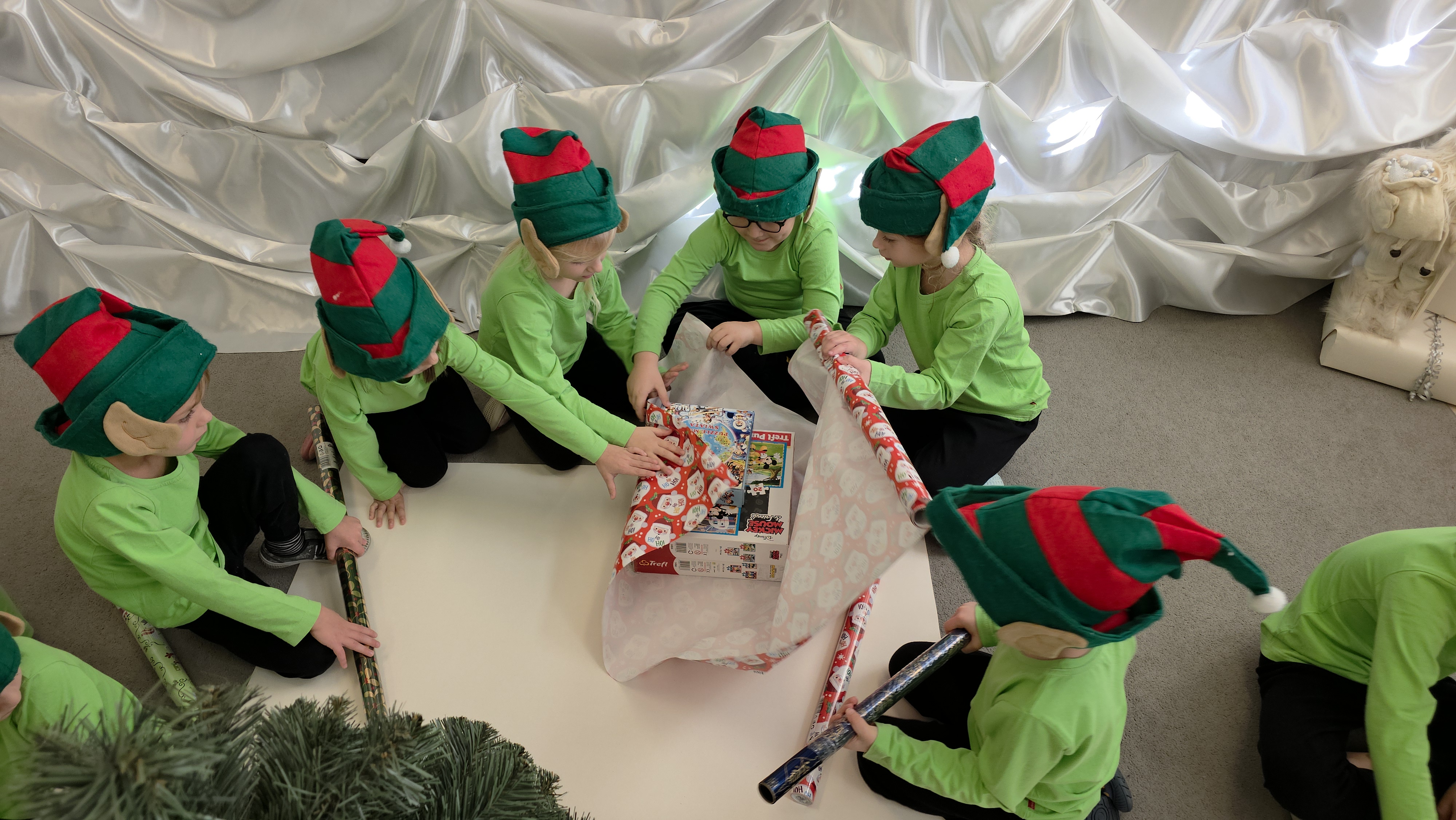 Elfy w przedświątecznej akcji: pakowanie, naprawianie, figlowanie.