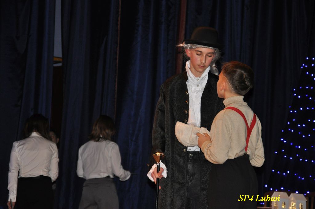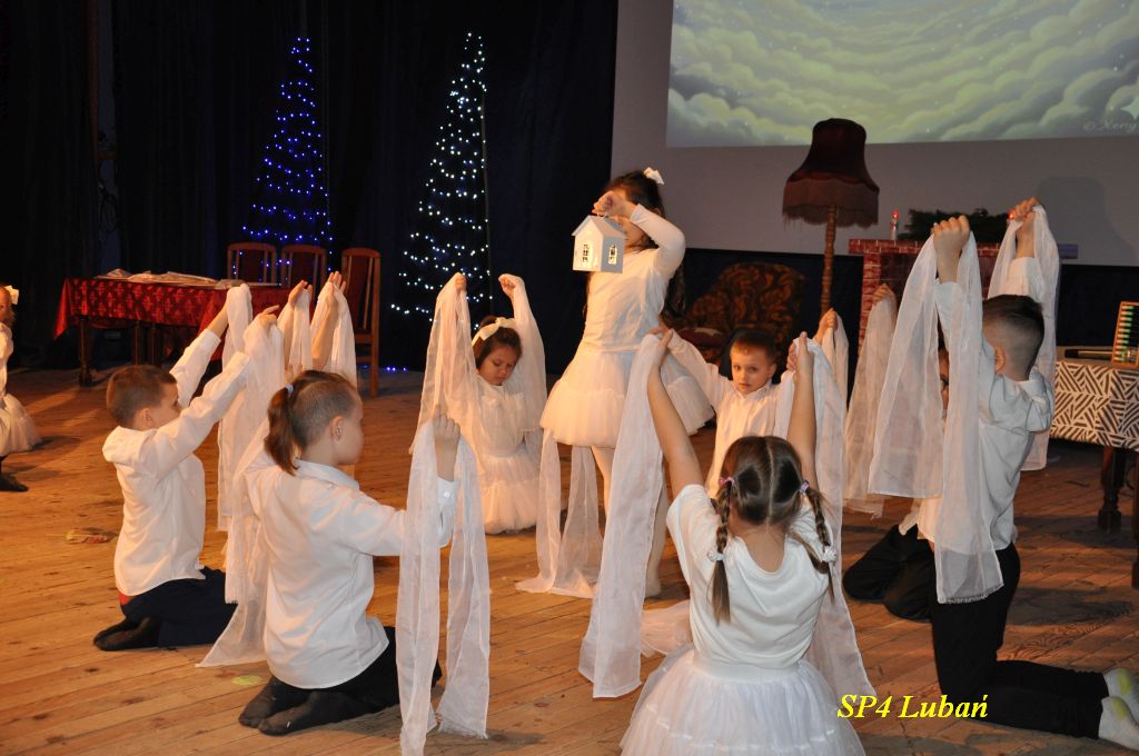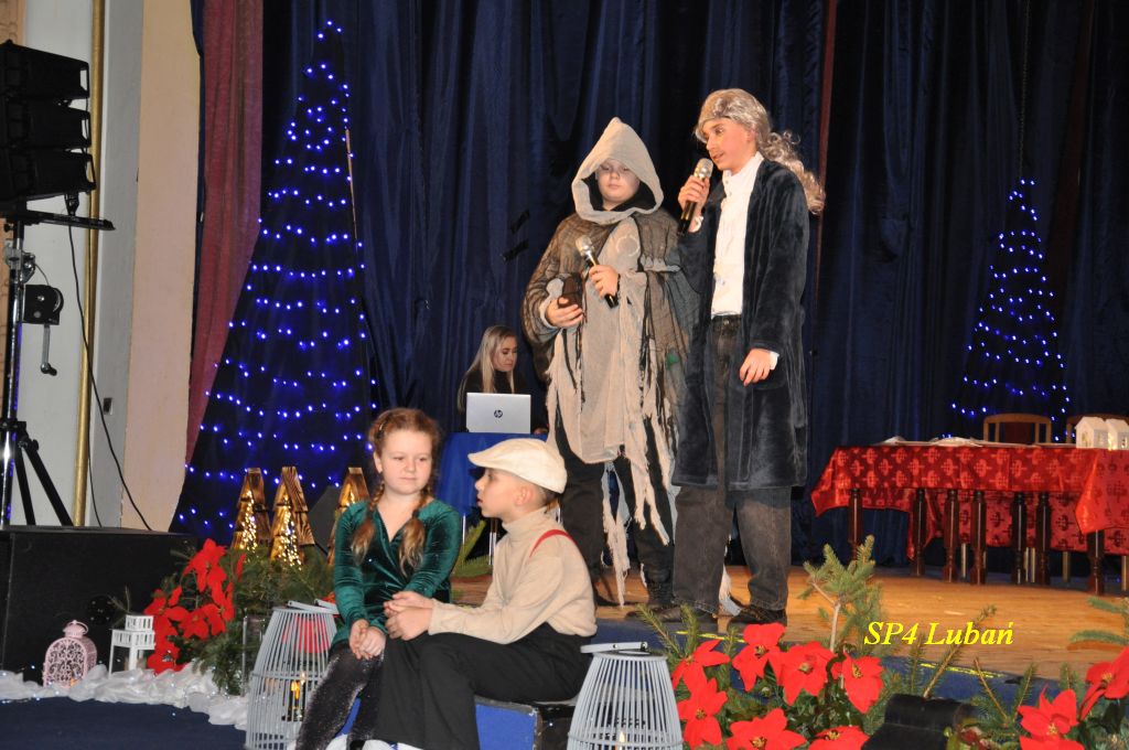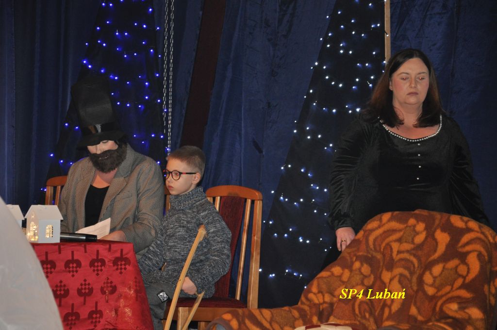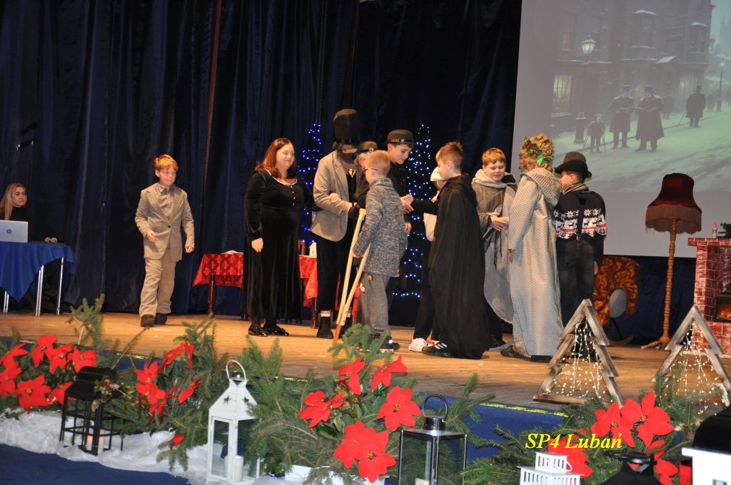 Dnia 18 grudnia 2025 r. w sali widowiskowej MDK odbyło się wyjątkowe przedstawienie teatralne pt. „Opowieść wigilijna”, przygotowane przez uczniów i nauczycieli Szkoły Podstawowej Nr 4 im. Kawalerów Orderu Uśmiechu w Lubaniu.