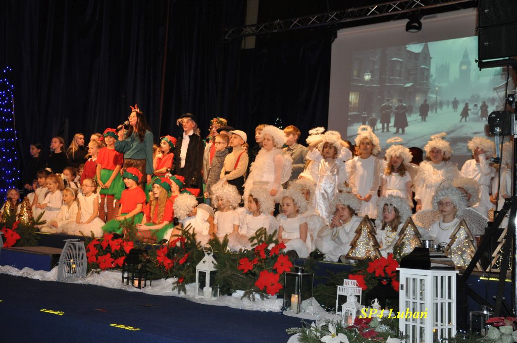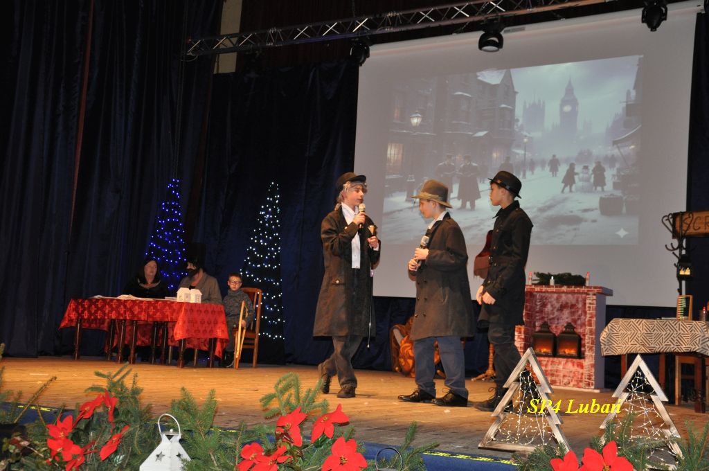 Spektakl, oparty na motywach znanej powieści, był piękną, wzruszającą opowieścią o sile dobra, empatii i świątecznej nadziei. Na scenie zaprezentowane zostały niezwykłe zdolności aktorskie i wokalne uczniów oraz nauczycieli , a najmłodsi uczestnicy zachwycili publiczność również występami tanecznymi . Starannie przygotowana scenografia, muzyka i choreografia stworzyły wyjątkowy, świąteczny klimat, który na długo pozostanie w pamięci widzów. Wydarzenie zgromadziło liczne grono publiczności , które z dużym entuzjazmem i wzruszeniem nagradzało artystów gromkimi brawami.