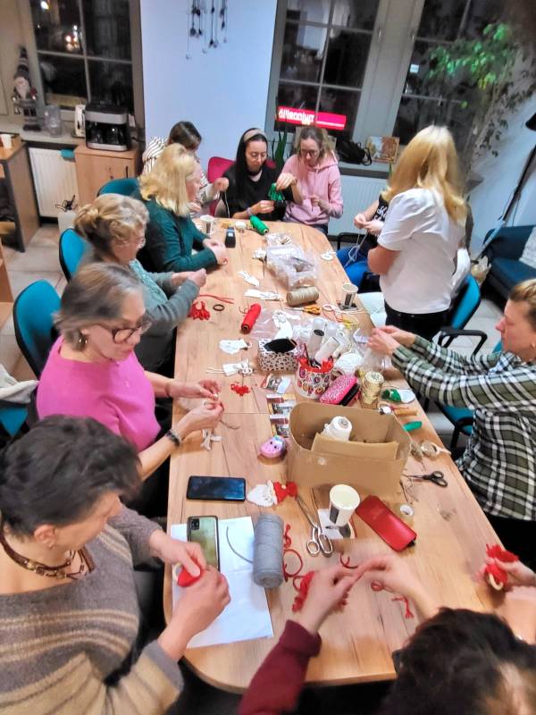 Warsztaty przebiegły w twórczej atmosferze, a uczestnicy z zaangażowaniem uczyli się podstawowych technik plecenia. Zajęcia były świetną okazją do rozwijania zdolności manualnych, kreatywnego spędzenia czasu oraz przygotowania unikalnych ozdób, które posłużą przez wiele kolejnych świąt.