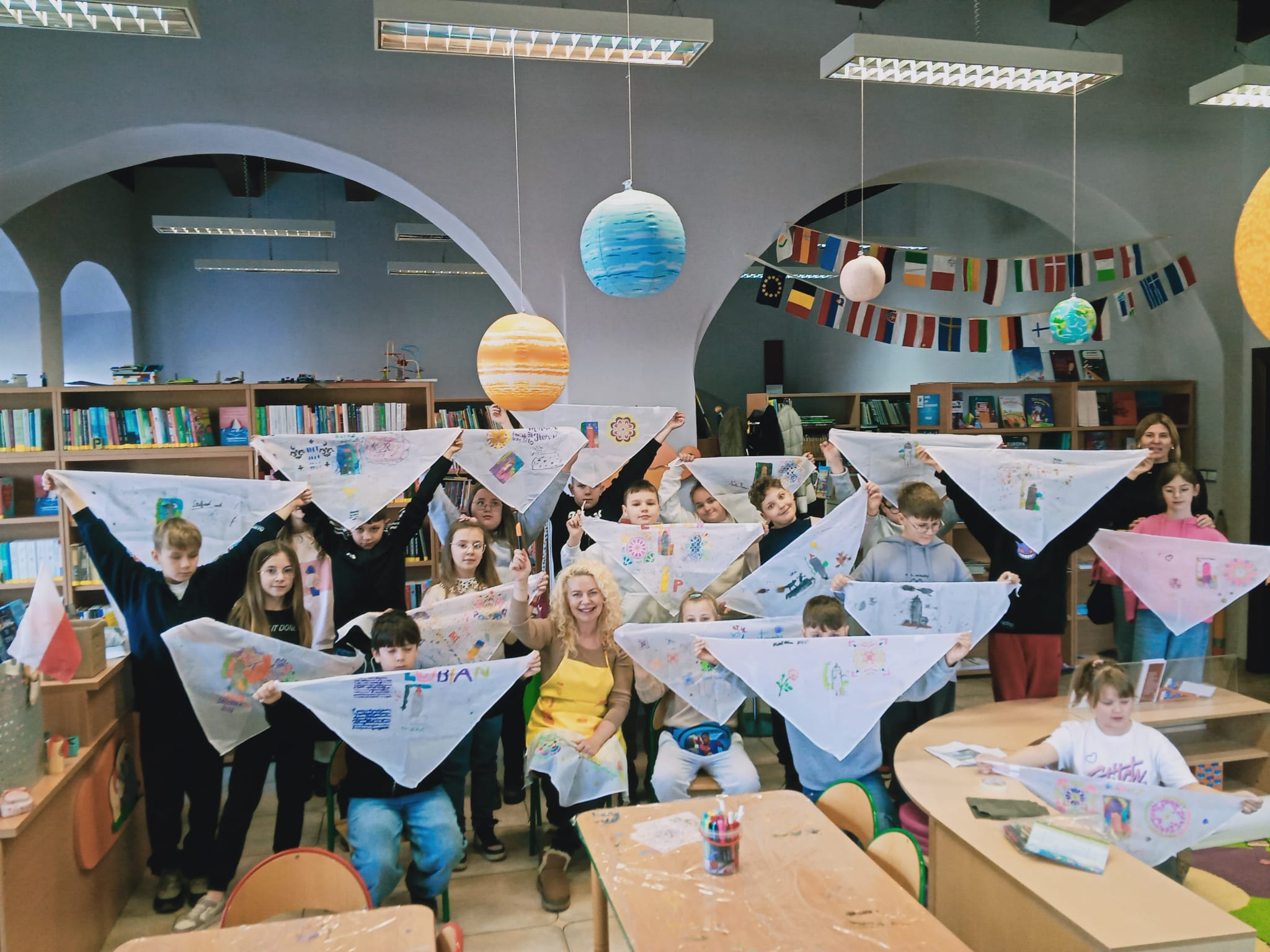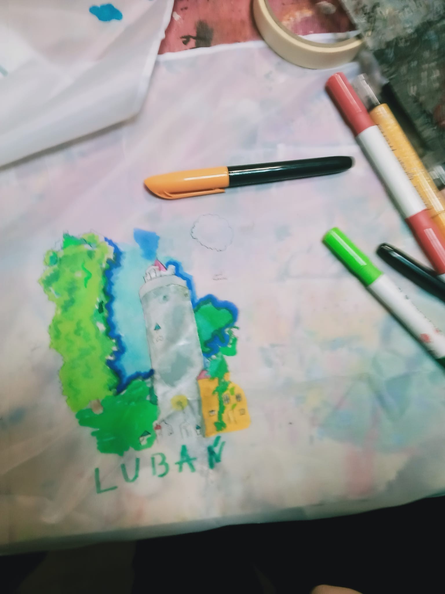Pod okiem lokalnej twórczyni dzieci wzięły udział w warsztatach malowania na tkaninach. Zajęcia łączyły elementy edukacji regionalnej z rozwijaniem kreatywności i zdolności manualnych. Przy użyciu specjalnych farb i mazaków do malowania tkanin uczestnicy przenosili na chusty charakterystyczne miejsca związane z Lubaniem, takie jak Wieża Bracka czy Ratusz. Dzieci samodzielnie dobierały kolory i kompozycje, ucząc się jednocześnie precyzji oraz pracy z materiałem innym niż papier.