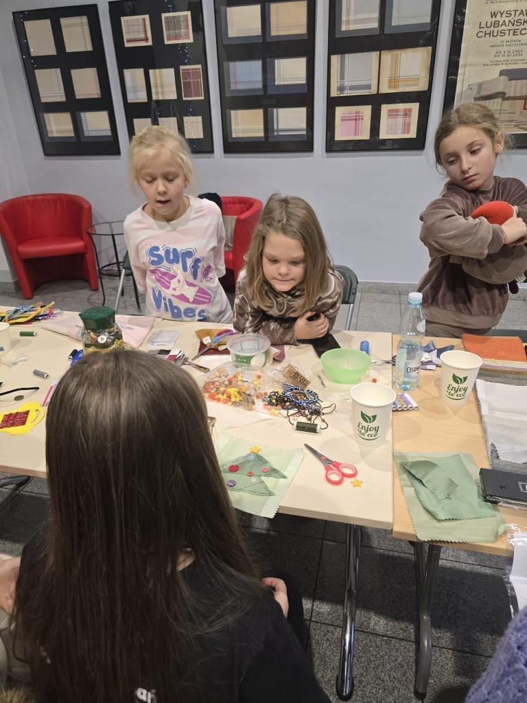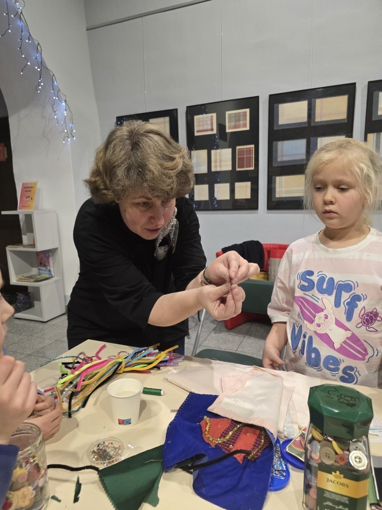 W grudniowe popołudnia, w ciepłej i twórczej atmosferze, dzieci pod okiem istruktorki Basi Krupy-Kapuśniak stawiały pierwsze kroki w posługiwaniu się igłą i nitką. Zajęcia rozpoczęły się od prezentacji różnorodnych tkanin, które stanowiły bazę do dalszych działań. Uczestnicy mieli okazję dotknąć i dokładnie obejrzeć materiały o odmiennych właściwościach, ucząc się rozpoznawać je nie tylko wzrokiem, ale także dotykiem.